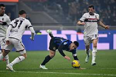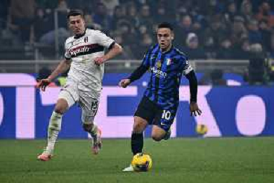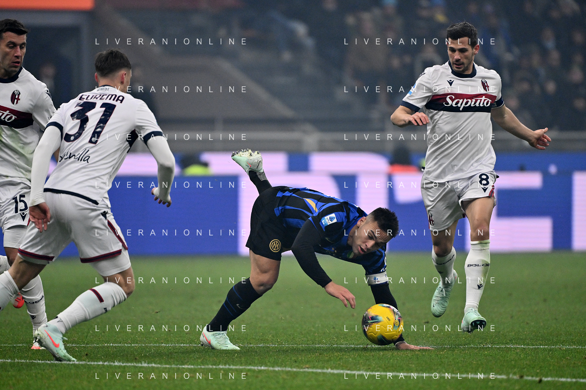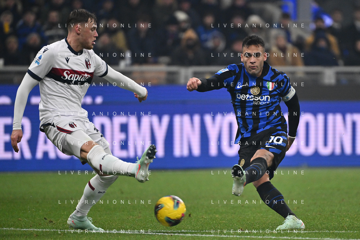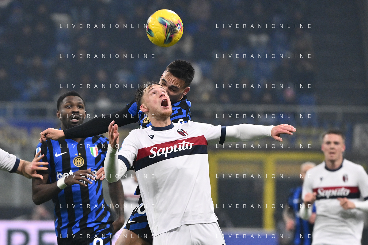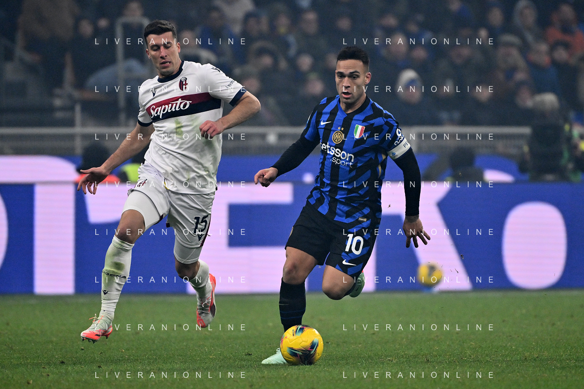 Inter vs Bologna nella foto Nicolò Casale (Bologna) e Lautaro Martinez (Inter) Milano 15-01-2025 Stadio Giuseppe Meazza - San Siro Campionato Serie A Enilive - recupero 19a giornata foto Roberto Garavaglia/Agenzia Aldo Liverani sas