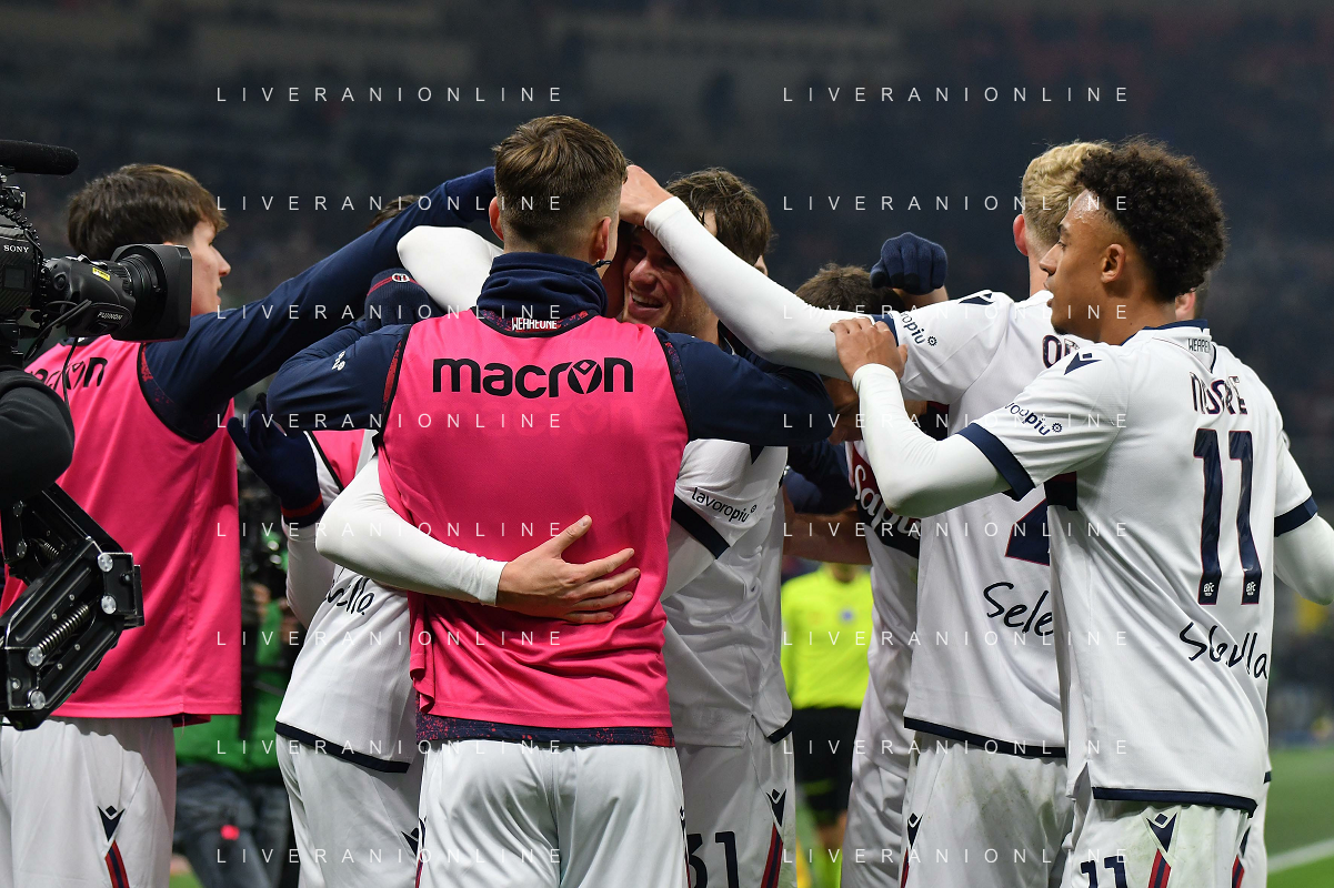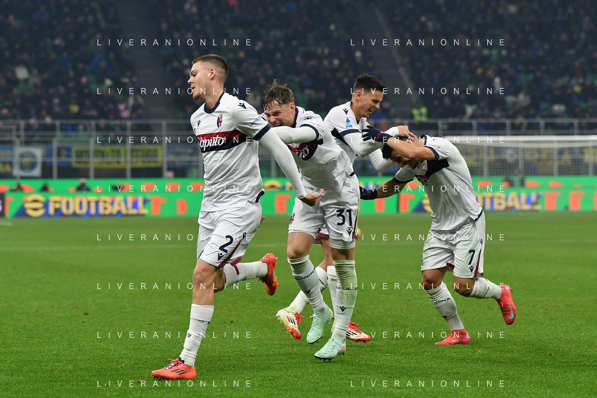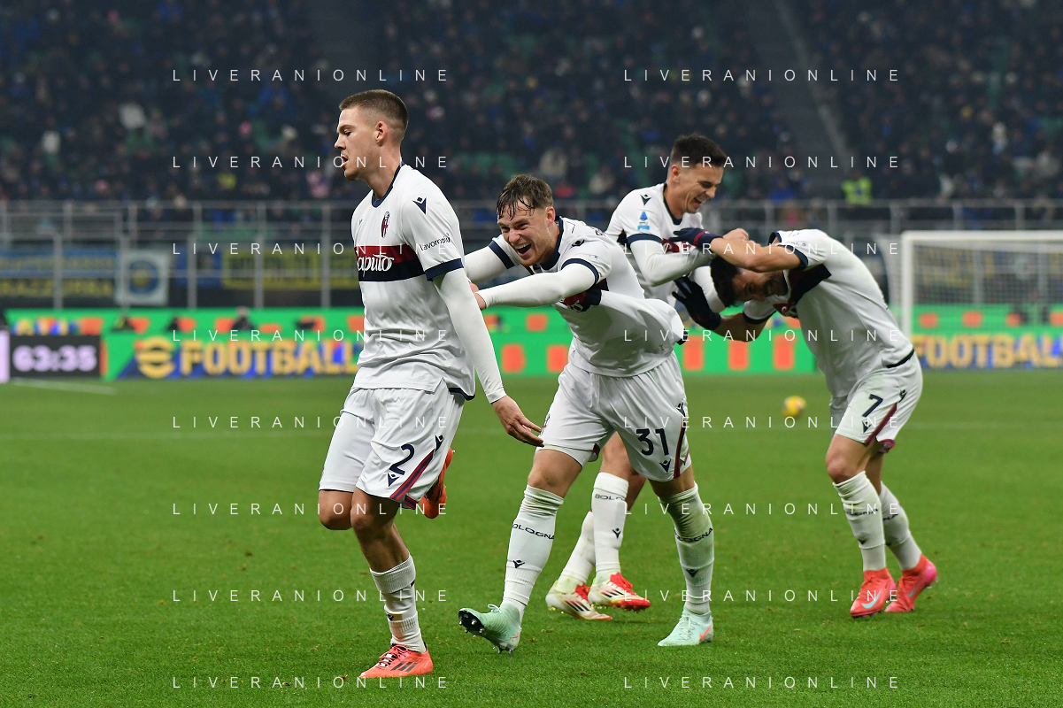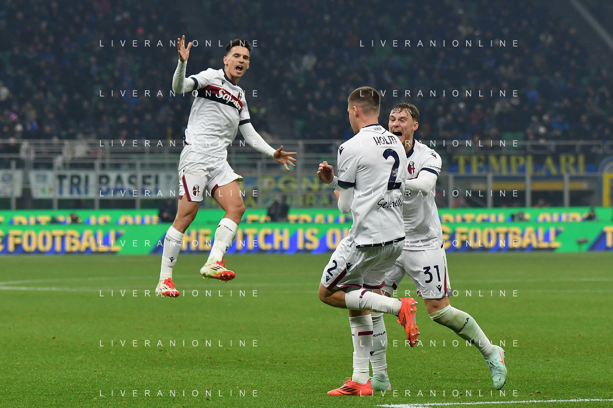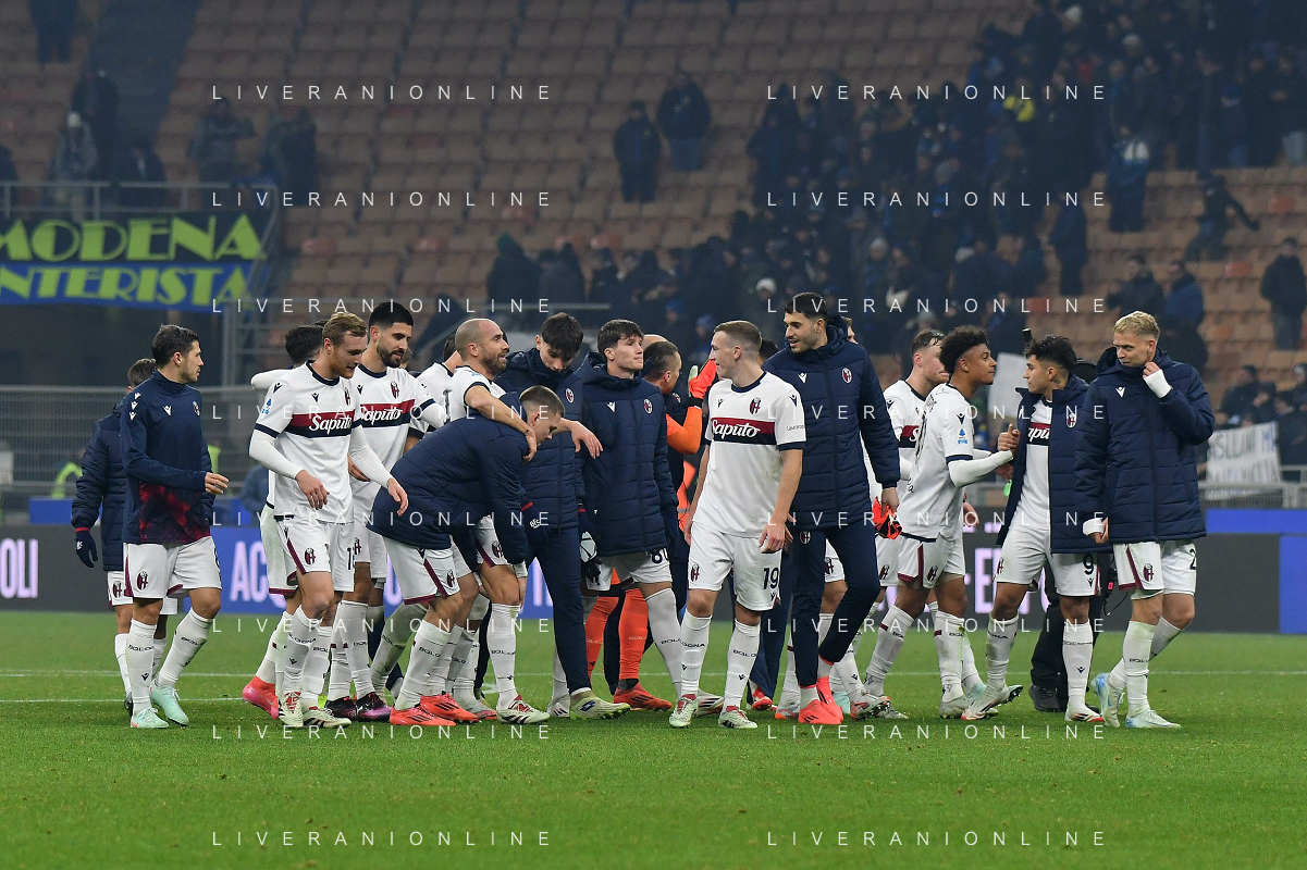 Inter vs Bologna nella foto esultanza Bologna dopo il gol del 2 a 2 Milano 15-01-2025 Stadio Giuseppe Meazza - San Siro Campionato Serie A Enilive - recupero 19a giornata foto Roberto Garavaglia/Agenzia Aldo Liverani sas