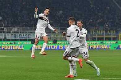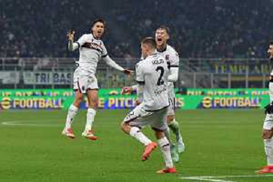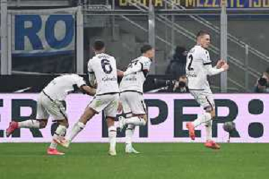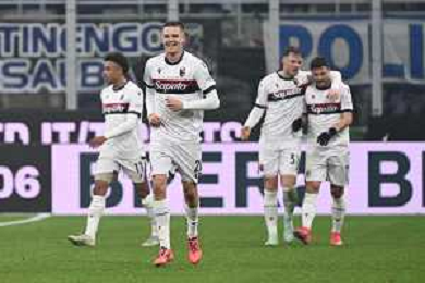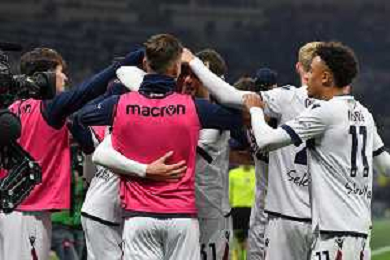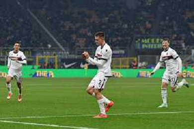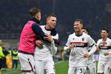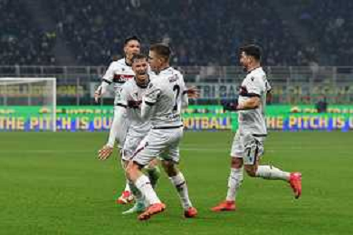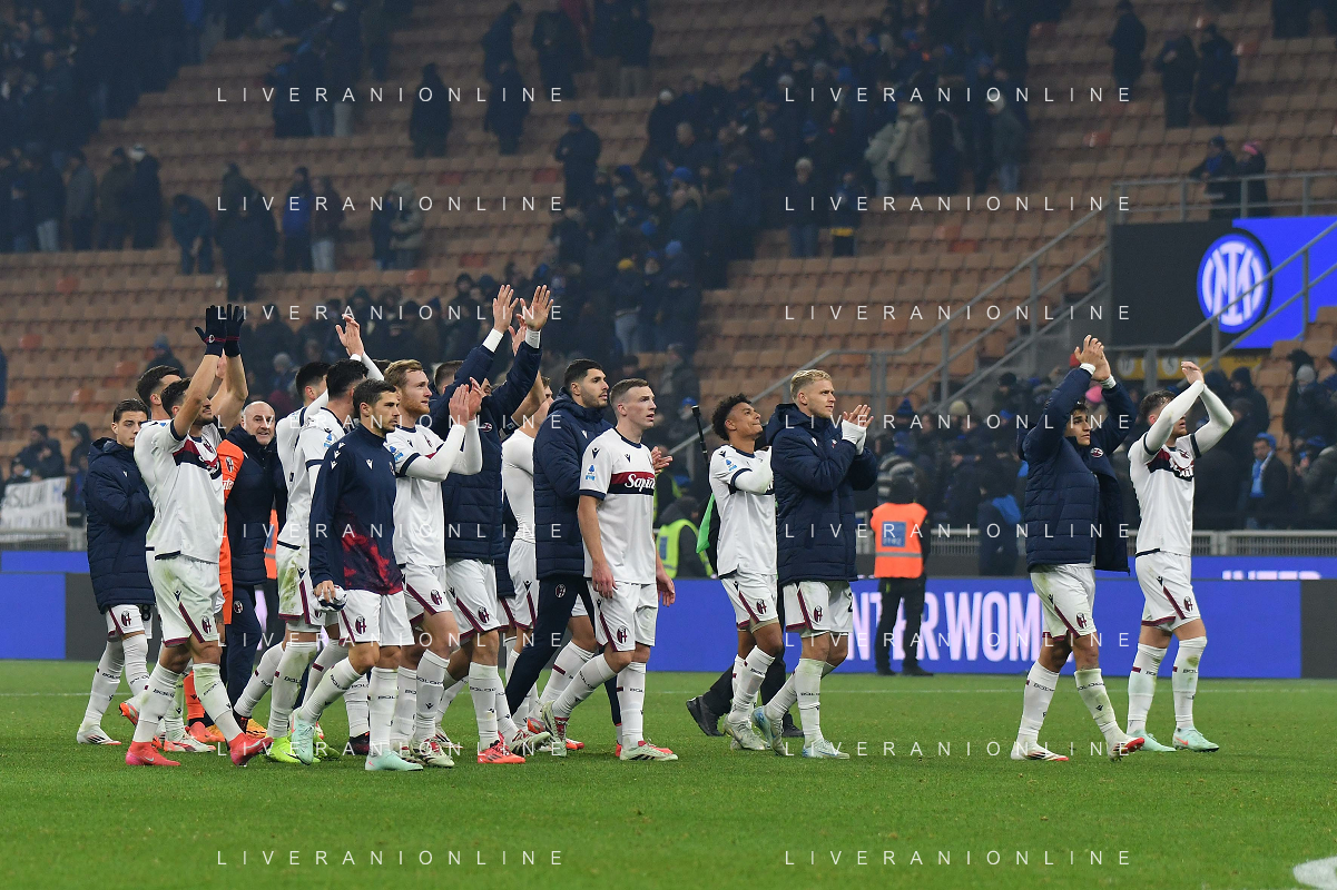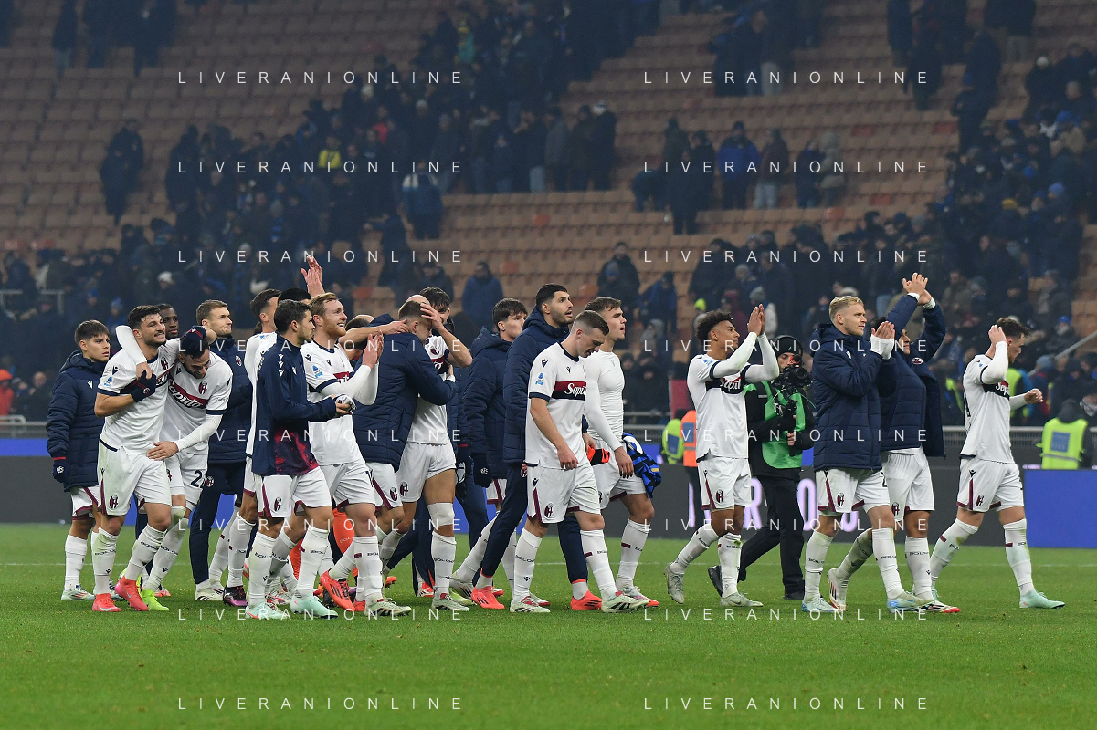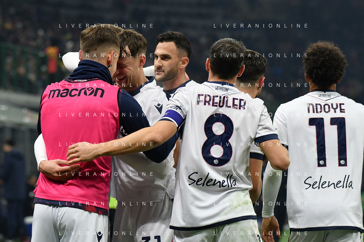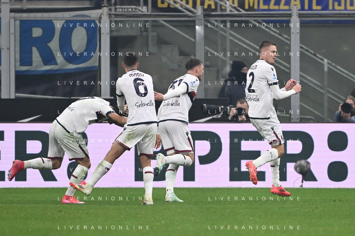 Inter vs Bologna nella foto esultanza Bologna dopo il gol del 2 a 2 Milano 15-01-2025 Stadio Giuseppe Meazza - San Siro Campionato Serie A Enilive - recupero 19a giornata foto Roberto Garavaglia/Agenzia Aldo Liverani sas