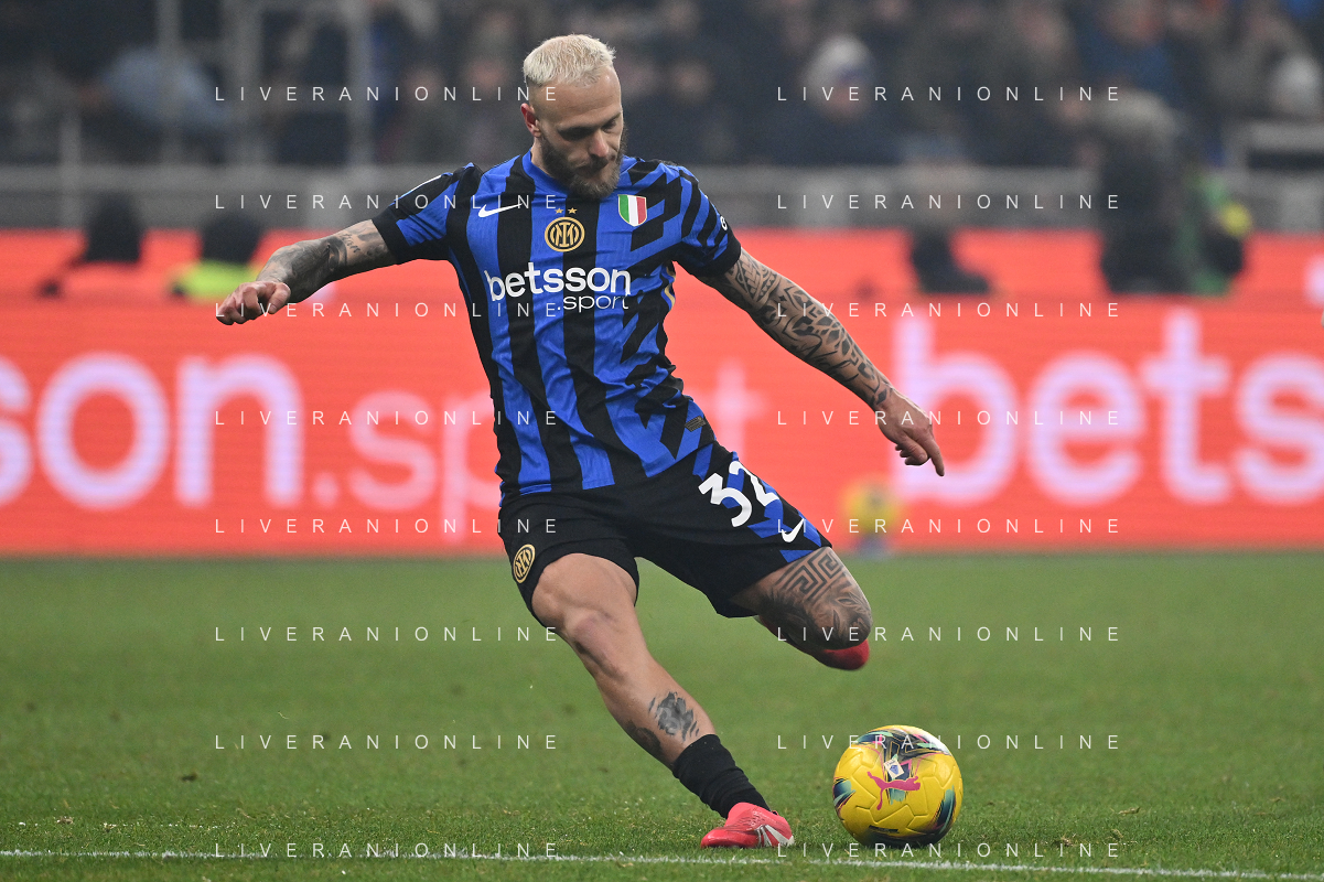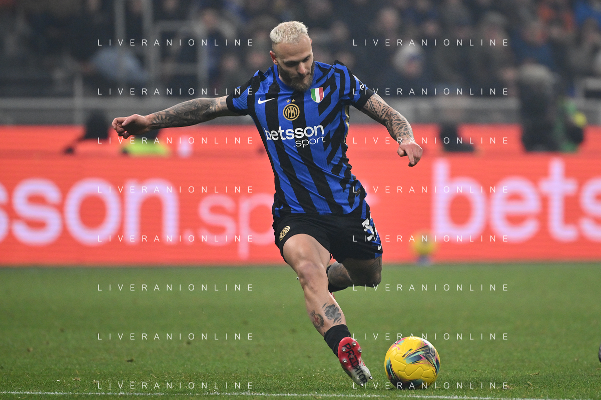 Inter vs Bologna nella foto Federico Dimarco (Inter) Milano 15-01-2025 Stadio Giuseppe Meazza - San Siro Campionato Serie A Enilive - recupero 19a giornata foto Roberto Garavaglia/Agenzia Aldo Liverani sas