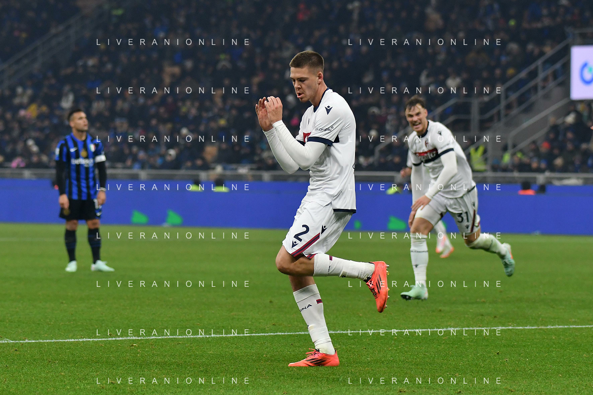 Inter vs Bologna nella foto Charalampos Lykogiannis (Bologna) Milano 15-01-2025 Stadio Giuseppe Meazza - San Siro Campionato Serie A Enilive - recupero 19a giornata foto Roberto Garavaglia/Agenzia Aldo Liverani sas