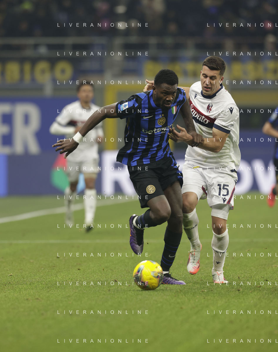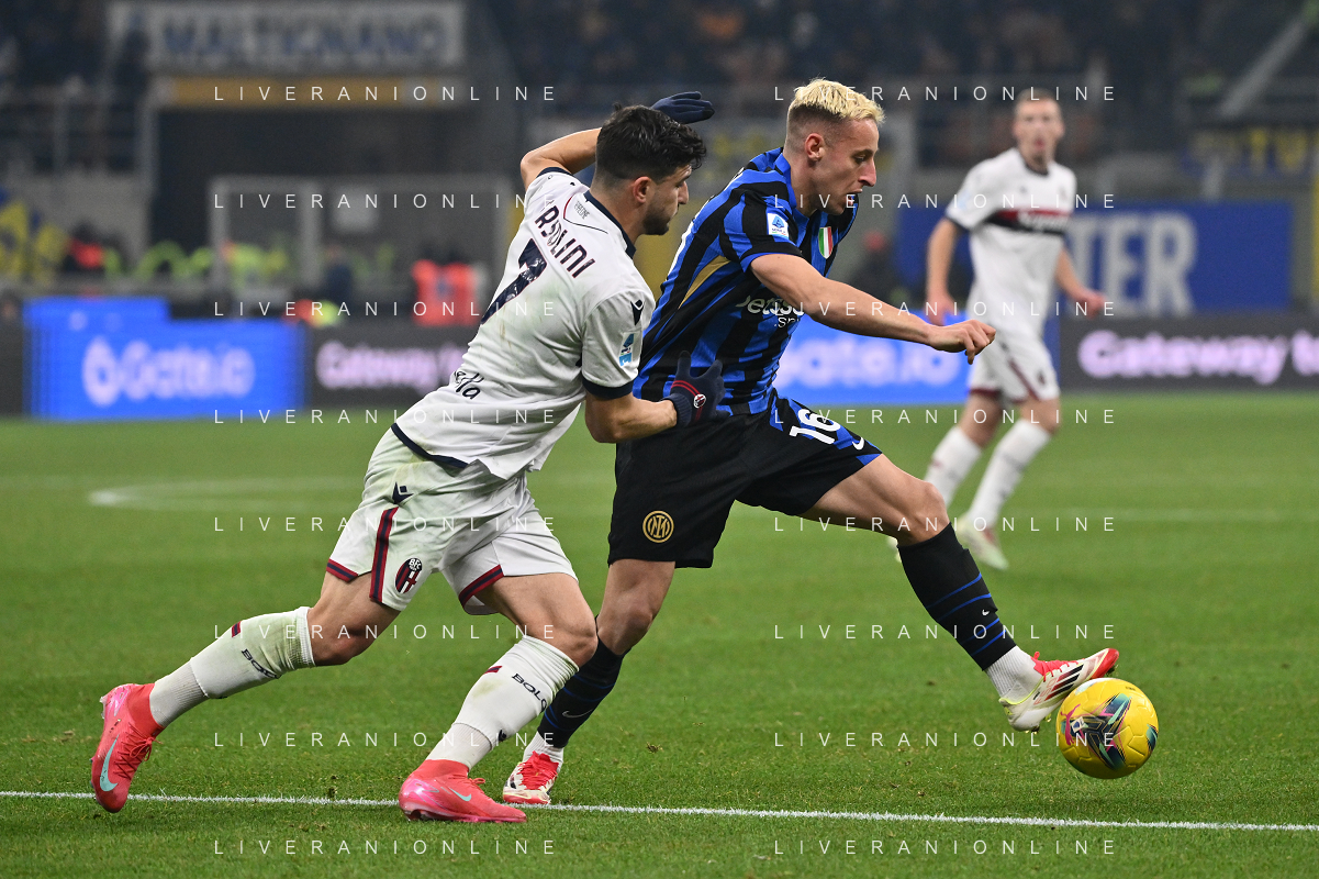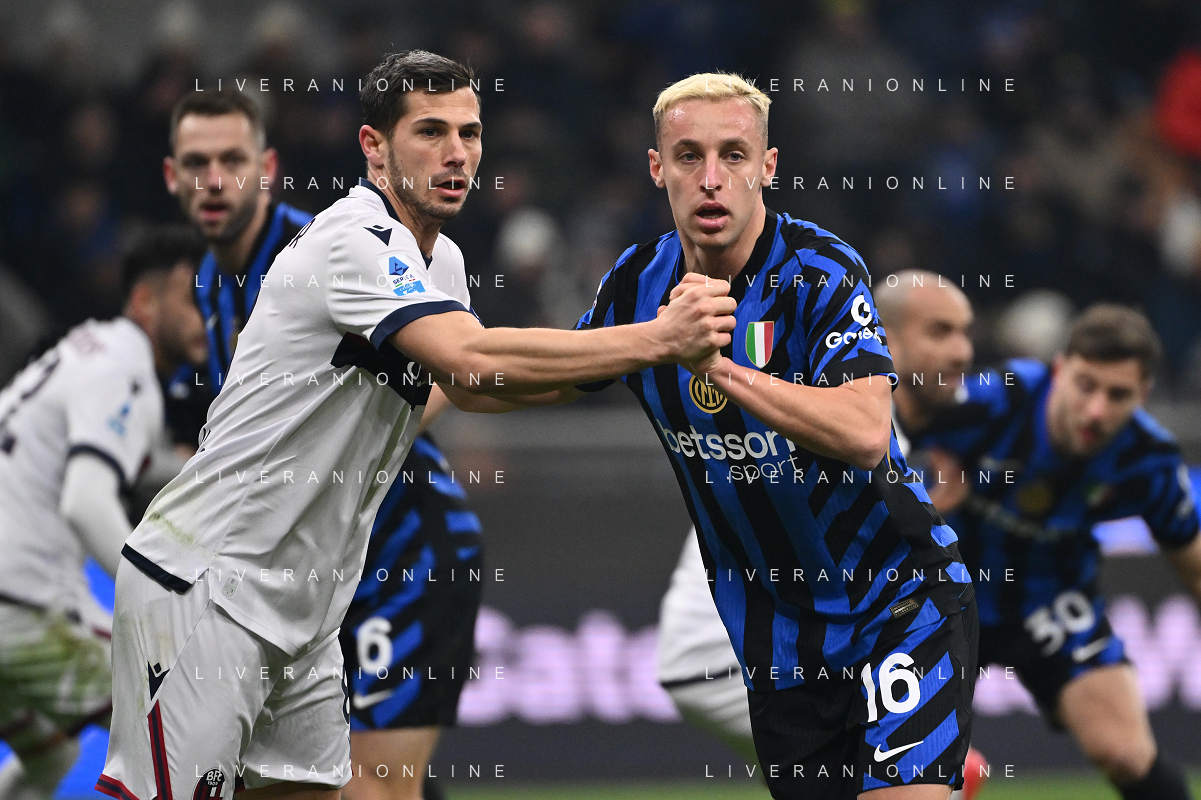 Inter vs Bologna nella foto Riccardo Orsolini (Bologna) e Davide Frattesi (Inter) Milano 15-01-2025 Stadio Giuseppe Meazza - San Siro Campionato Serie A Enilive - recupero 19a giornata foto Roberto Garavaglia/Agenzia Aldo Liverani sas
