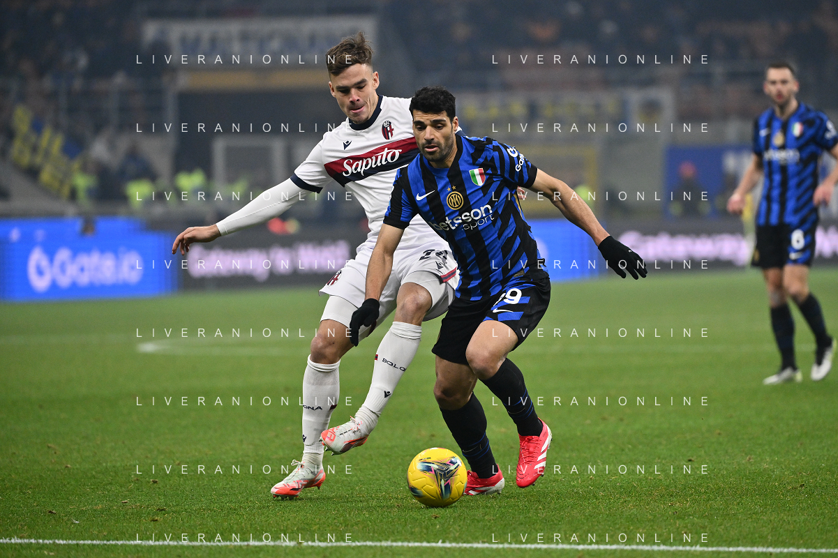 Inter vs Bologna nella foto Thijs Dallinga (Bologna) e Mehdi Taremi (Inter) Milano 15-01-2025 Stadio Giuseppe Meazza - San Siro Campionato Serie A Enilive - recupero 19a giornata foto Roberto Garavaglia/Agenzia Aldo Liverani sas