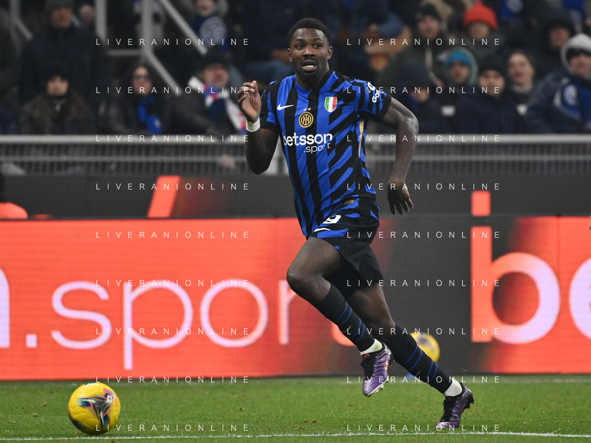 Inter vs Bologna nella foto Marcus Thuram (Inter) Milano 15-01-2025 Stadio Giuseppe Meazza - San Siro Campionato Serie A Enilive - recupero 19a giornata foto Roberto Garavaglia/Agenzia Aldo Liverani sas
