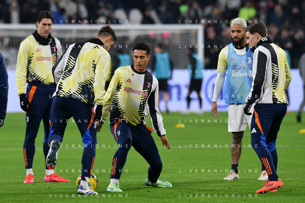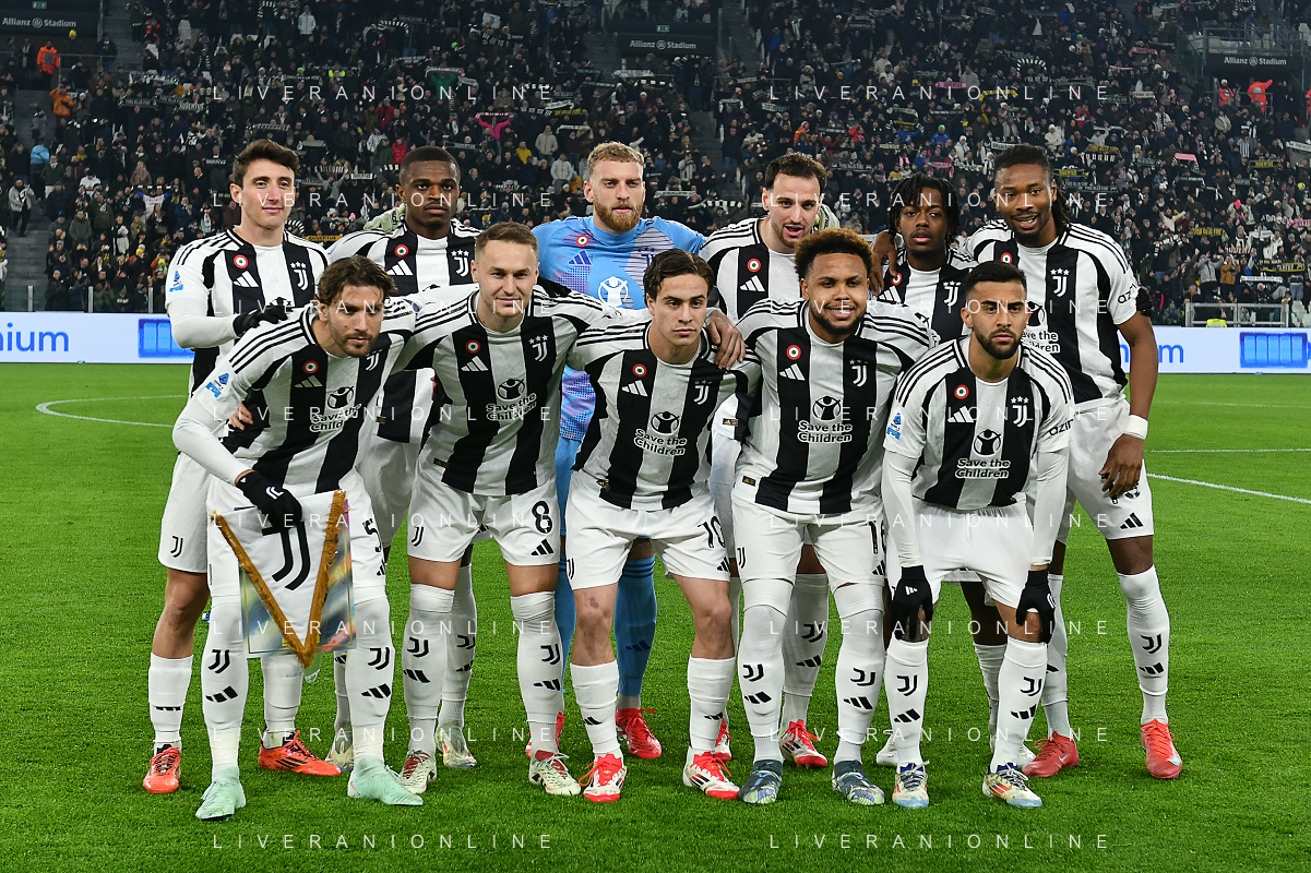 Torino 18.01.2025 Allianz Stadium @Manuela Viganti /Ag. Aldo Liverani sas Juventus vs Milan Campionato Calcio Serie A Enilive 2024/2025 21a giornata Nella foto: la formazione della juventus da sx verso dx: andrea cambiaso, pierre kalulu, michele di gregorio, federico gatti, samuel mbangula, khephren thuram, manuel locatelli, teun koopmeiners, kenan yildiz, weston mckennie, nico gonzalez