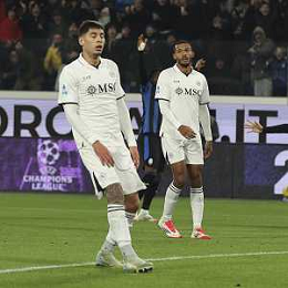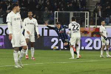 napoli players expresses disappointment after Mateo Retegui of Atalanta BC goal during Atalanta BC vs SSC Napoli, 21° Serie A Enilive 2024-25 game at Gewiss stadium in Bergamo (BG), Italy, on January 18, 2025. (Photo by Davide Casentini)-AGENZIA ALDO LIVERANI SAS