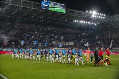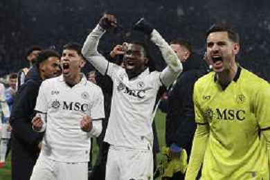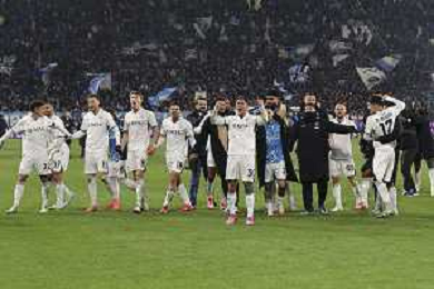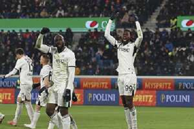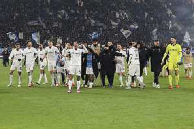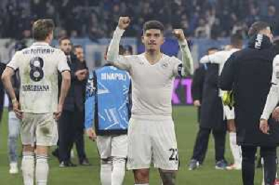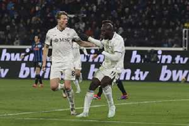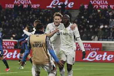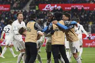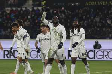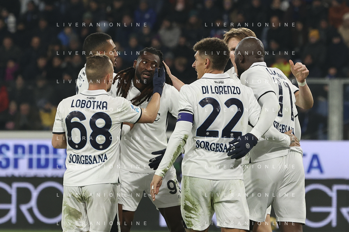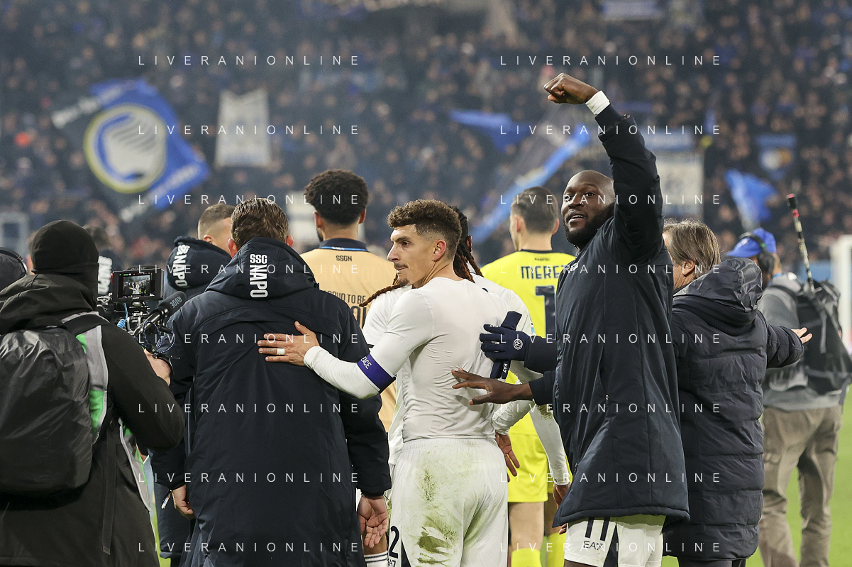 napoli players celebrate the victory at the end of Atalanta BC vs SSC Napoli, 21° Serie A Enilive 2024-25 game at Gewiss stadium in Bergamo (BG), Italy, on January 18, 2025. (Photo by Davide Casentini)-AGENZIA ALDO LIVERANI SAS