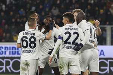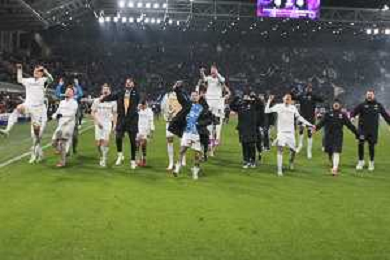 Napoli players celebrate the victory at the end of Atalanta BC vs SSC Napoli, 21° Serie A Enilive 2024-25 game at Gewiss stadium in Bergamo (BG), Italy, on January 18, 2025. (Photo by Davide Casentini)-AGENZIA ALDO LIVERANI SAS