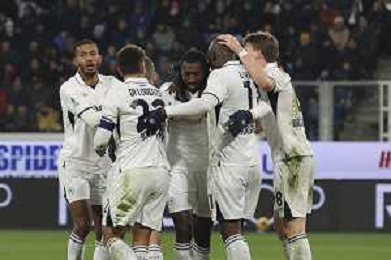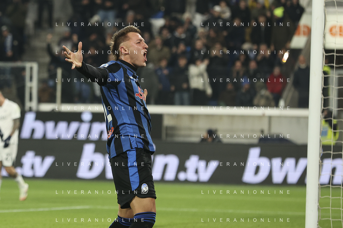 Mateo Retegui of Atalanta BC celebrates after scoring goal during Atalanta BC vs SSC Napoli, 21° Serie A Enilive 2024-25 game at Gewiss stadium in Bergamo (BG), Italy, on January 18, 2025. (Photo by Davide Casentini)-AGENZIA ALDO LIVERANI SAS