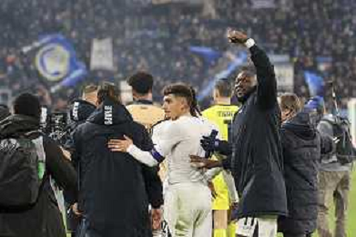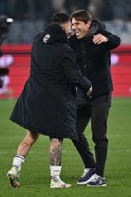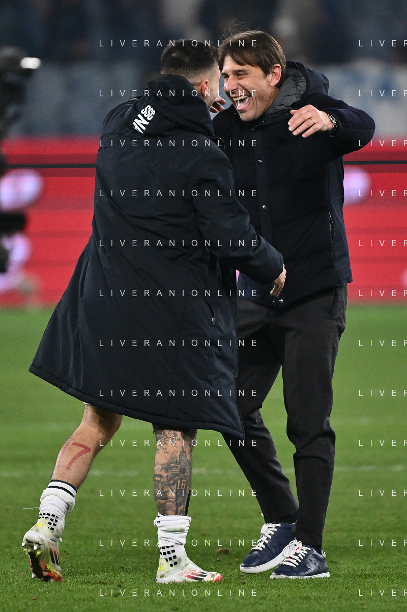 TVRG Atalanta vs Napoli nella foto Matteo Politano (Napoli) SX e Antonio Conte allenatore Napoli DX esultanza a fine partita Bergamo 18-01-2025 Gewiss Stadium Campionato Serie A Enilive - 21a giornata foto Roberto Garavaglia/Agenzia Aldo Liverani sas