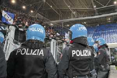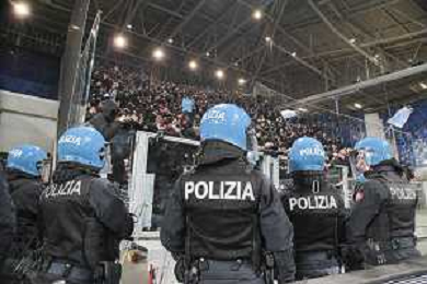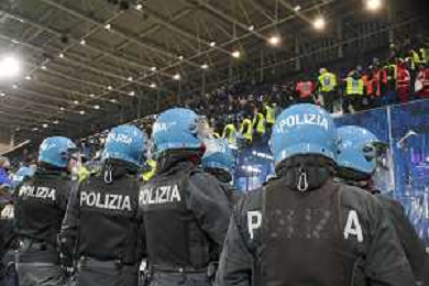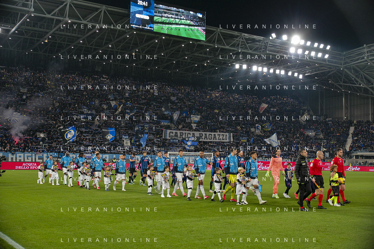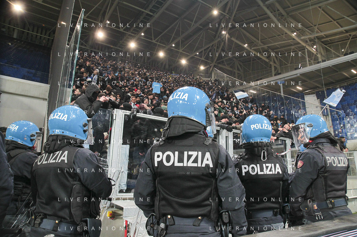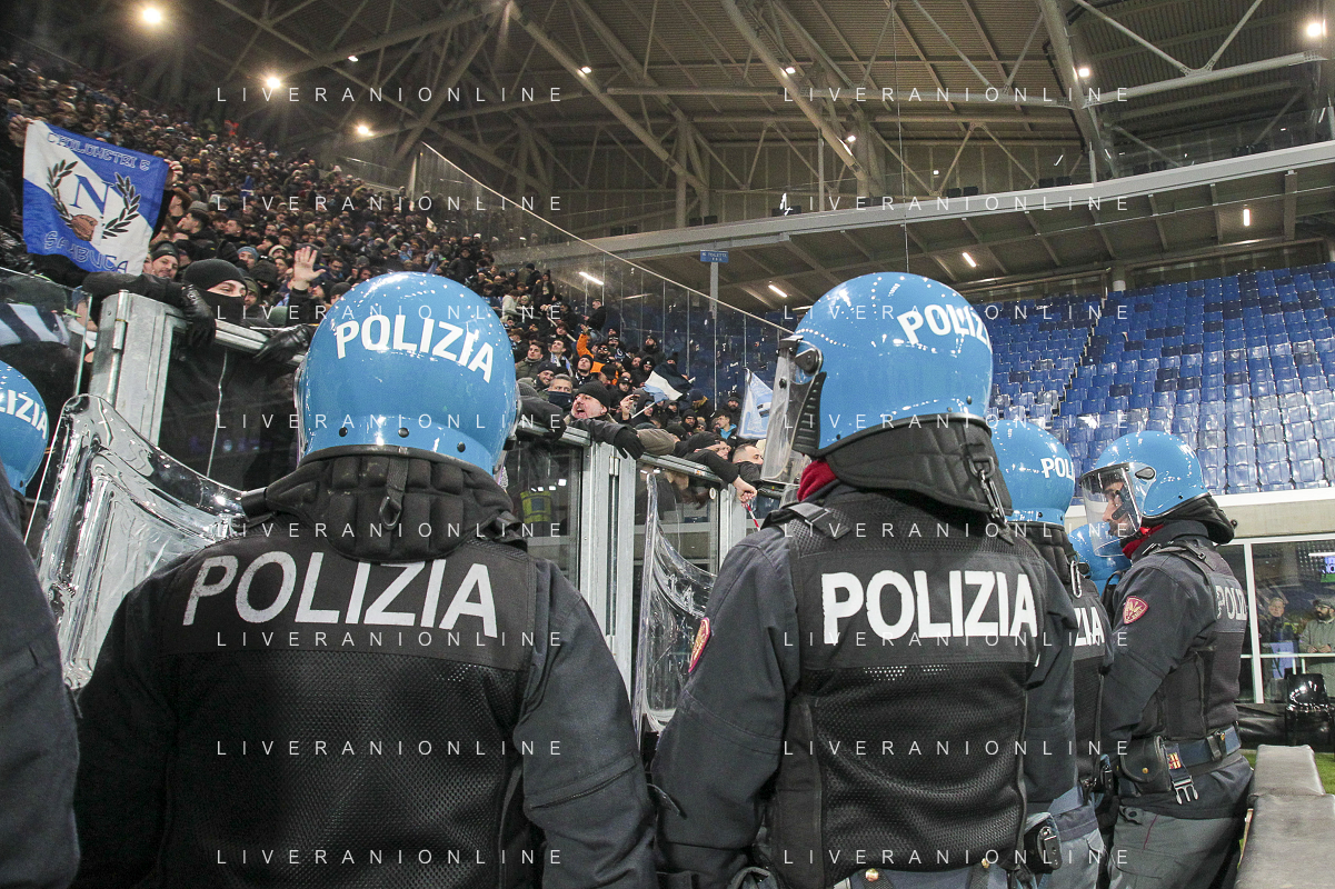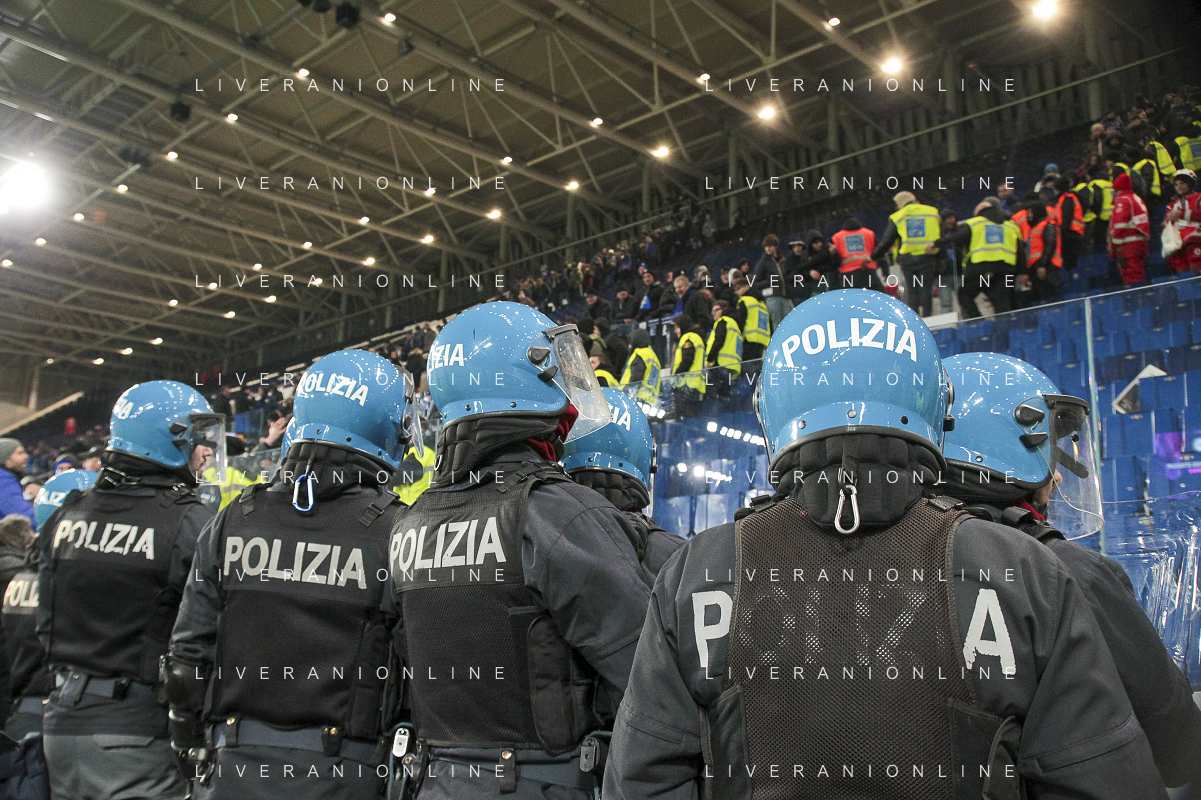 Polizia a bordo campo - The Policemen control the Atalanata's and Napoli's fans at the end of Atalanta BC vs SSC Napoli, 21° Serie A Enilive 2024-25 game at Gewiss stadium in Bergamo (BG), Italy, on January 18, 2025. (Photo by Davide Casentini)-AGENZIA ALDO LIVERANI SAS