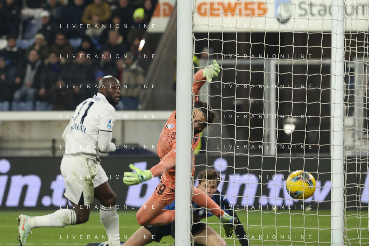 Romelu Lukaku of SSC Napoli scores a goal during Atalanta BC vs SSC Napoli, 21° Serie A Enilive 2024-25 game at Gewiss stadium in Bergamo (BG), Italy, on January 18, 2025. (Photo by Davide Casentini)-AGENZIA ALDO LIVERANI SAS