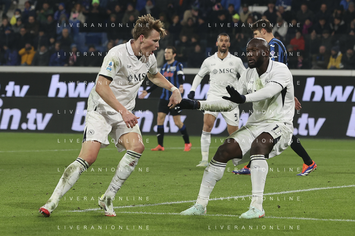 Romeu Lukaku e giovanni di lorenzo during Atalanta BC vs SSC Napoli, 21° Serie A Enilive 2024-25 game at Gewiss stadium in Bergamo (BG), Italy, on January 18, 2025. (Photo by Davide Casentini)-AGENZIA ALDO LIVERANI SAS