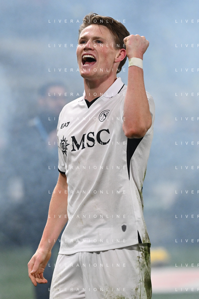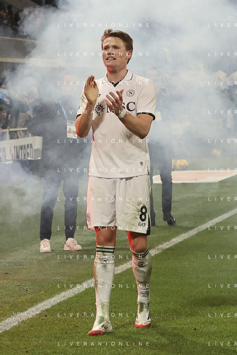 Scott McTominay of SSC Napoli celebrate the victory at the end of Atalanta BC vs SSC Napoli, 21° Serie A Enilive 2024-25 game at Gewiss stadium in Bergamo (BG), Italy, on January 18, 2025. (Photo by Davide Casentini)-AGENZIA ALDO LIVERANI SAS