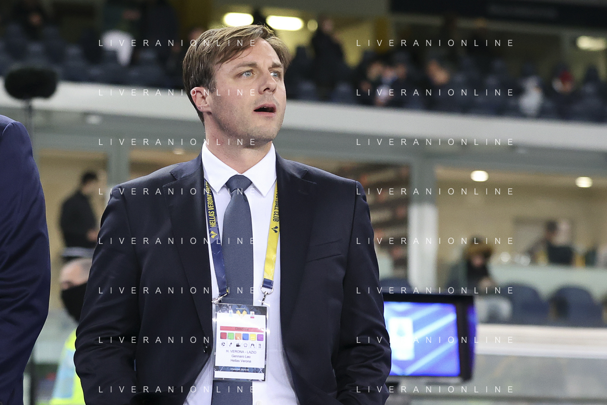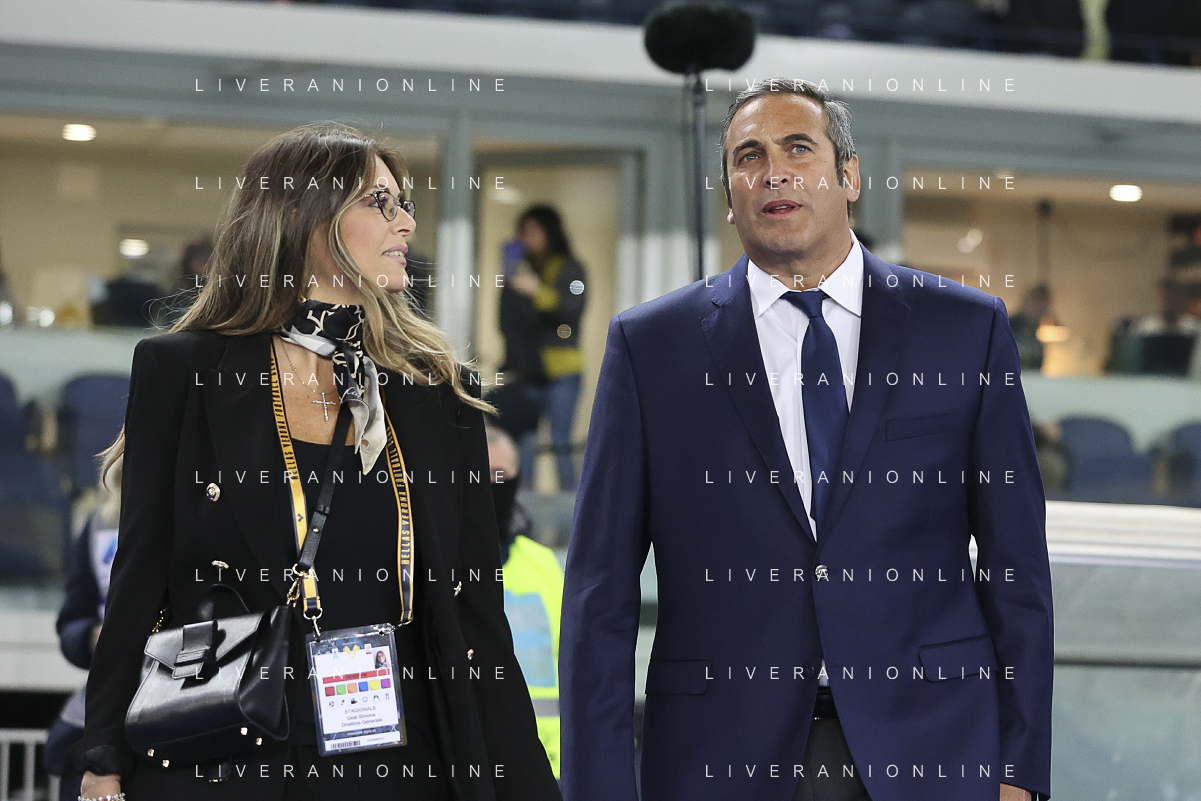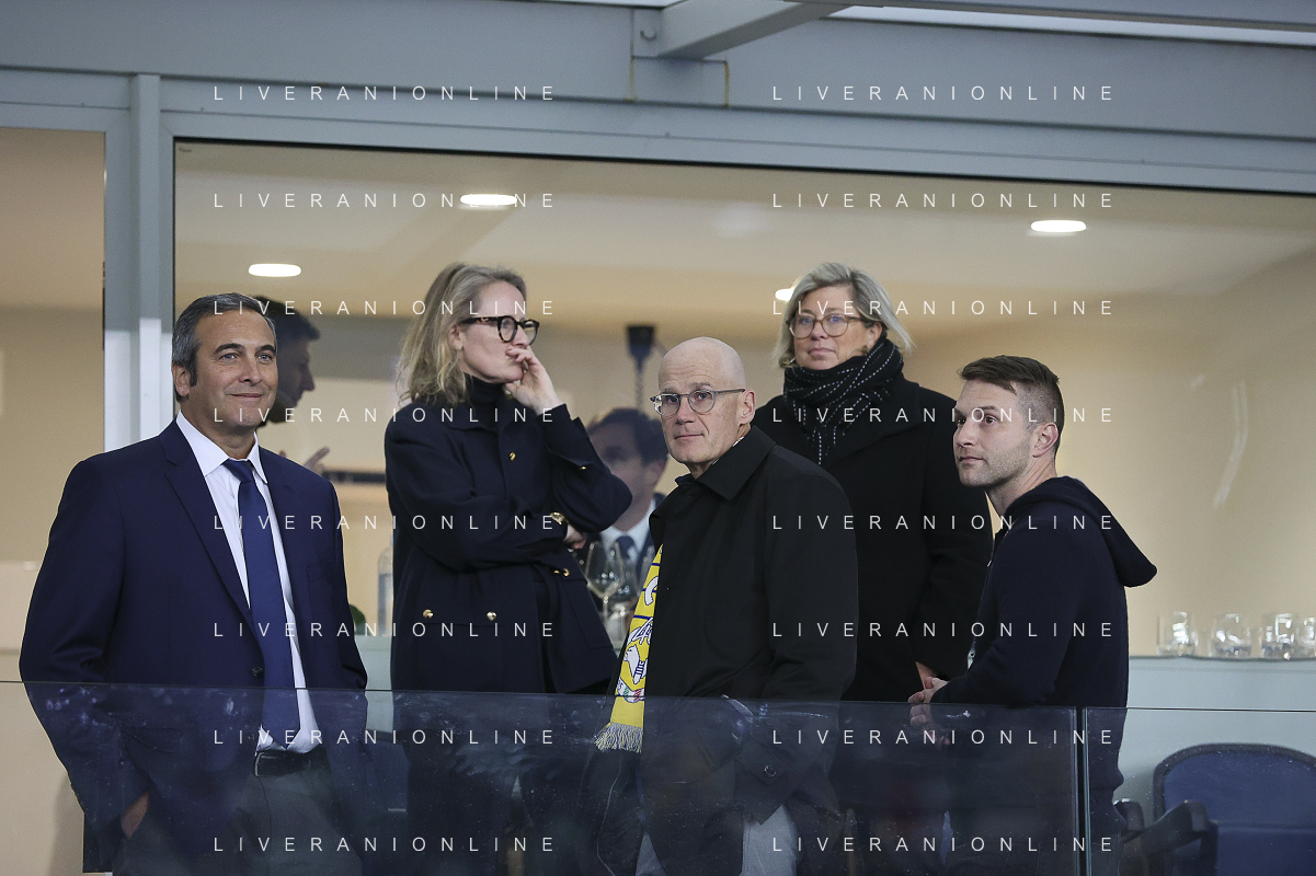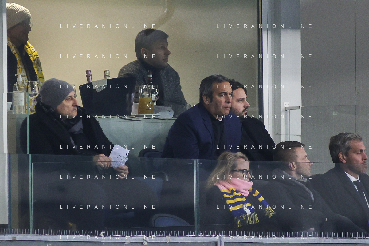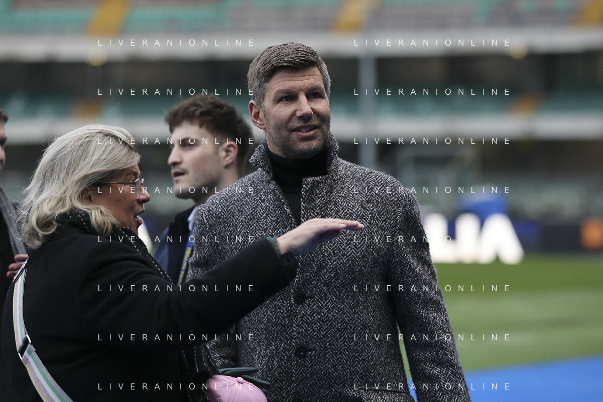 in the first line from left to right: Maurizio Setti Senior Advisor of Football Operations of Hellas Verona FC, Thomas Hitzlsperger Member of Executive Board of Hellas Verona, Donata Hopfen Member of Executive Board of Hellas Verona, Dirk Swaneveld Member of Executive Board of Hellas Verona,Gennaro Leo Vice General Director of Hellas Verona and Isabella Thun Member of Executive Board of Hellas Verona; in second line: Maurizio Setti Senior Advisor of Football Operations of Hellas Verona FC, Christian Puscasiu Member of Executive Board of Hellas Verona, Italo Zanzi Ceo of Hellas Verona FC and Sean Foley manager of Hellas Verona FC during Hellas Verona FC vs SS Lazio, 21° Serie A Enilive 2024-25 game at Marcantonio Bentegodi stadium in Verona (VR), Italy, on January 19, 2025. (Photo by Davide Casentini)- AGENZIA ALDO LIVERANI SAS