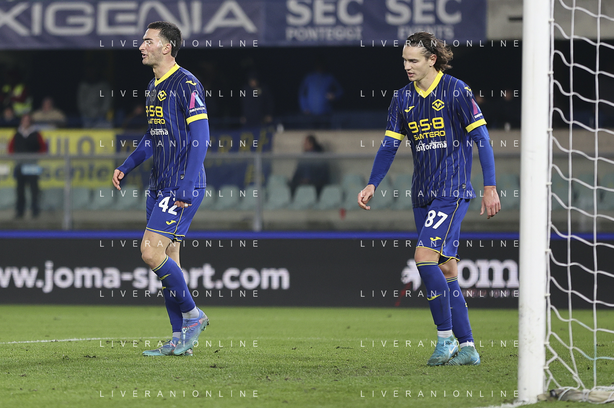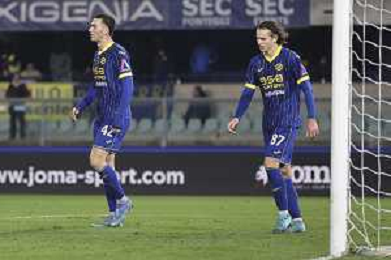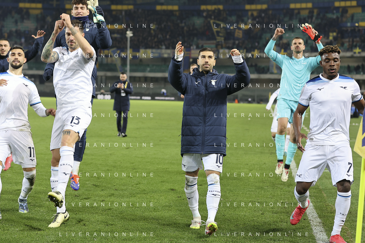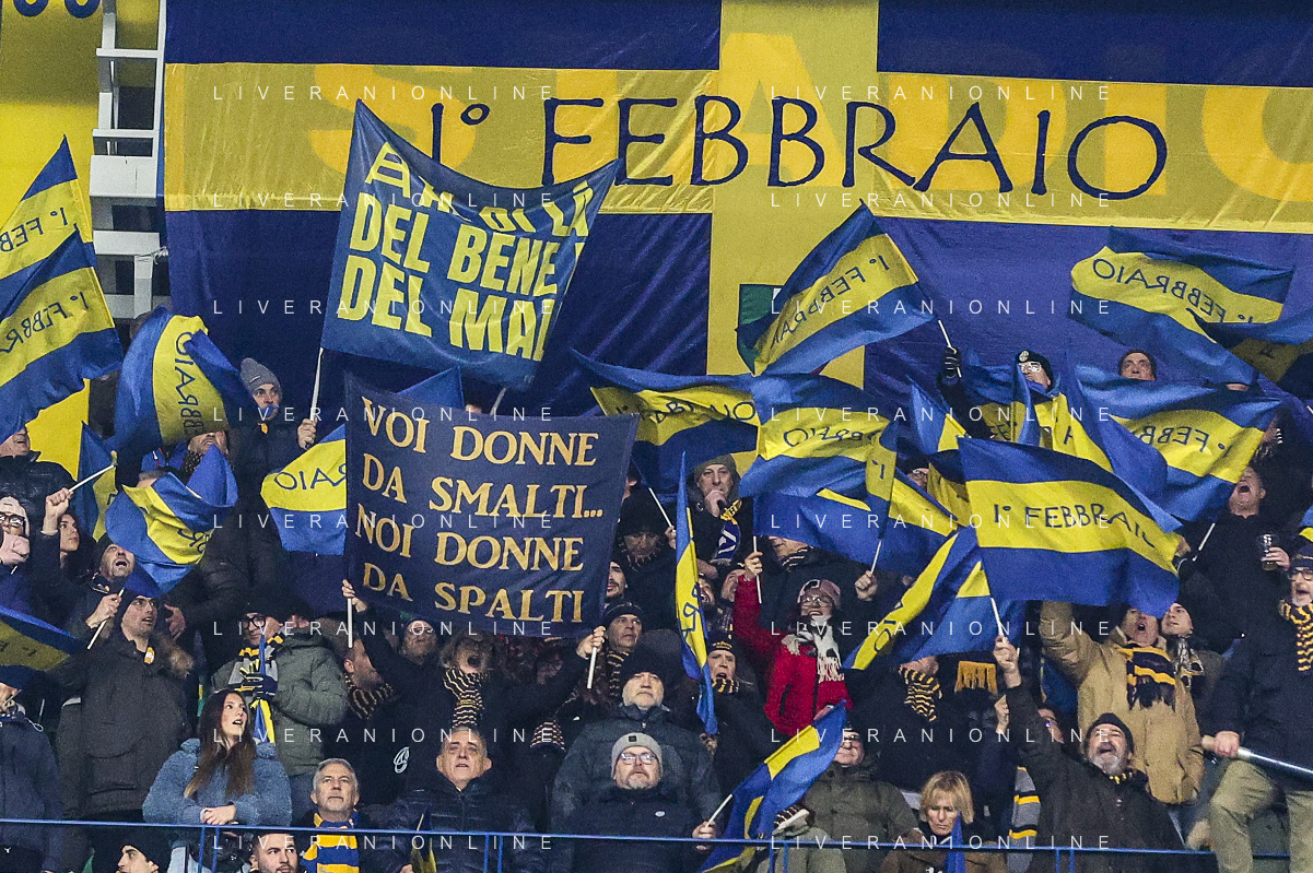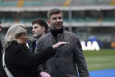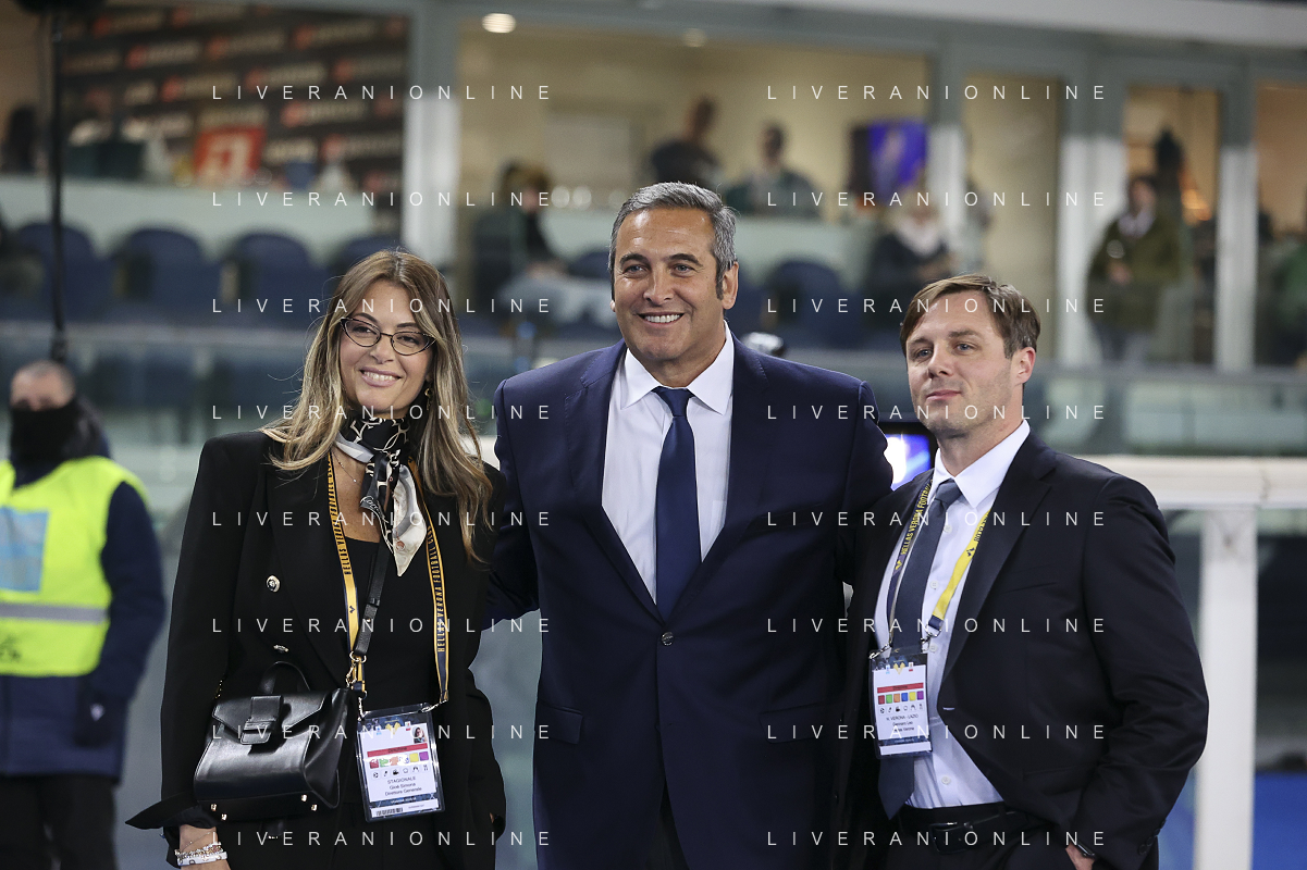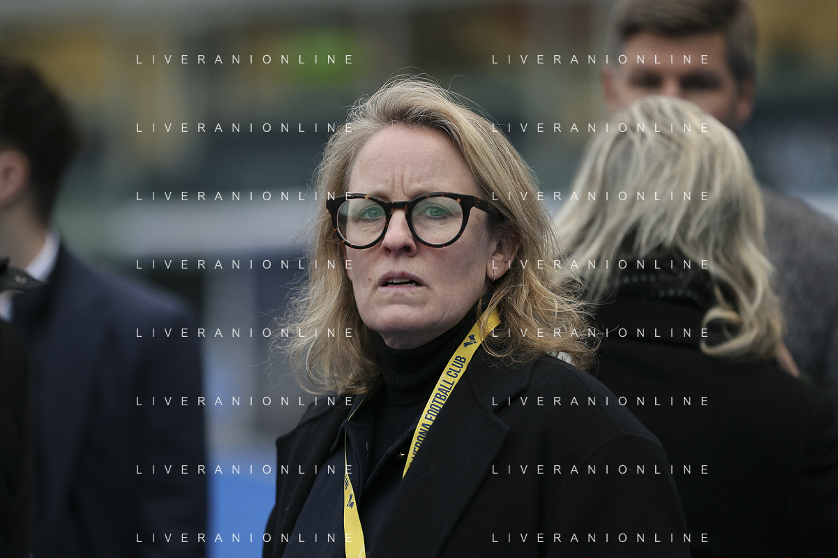 in the first line from left to right: Maurizio Setti Senior Advisor of Football Operations of Hellas Verona FC, Thomas Hitzlsperger Member of Executive Board of Hellas Verona, Donata Hopfen Member of Executive Board of Hellas Verona, Dirk Swaneveld Member of Executive Board of Hellas Verona,Gennaro Leo Vice General Director of Hellas Verona and Isabella Thun Member of Executive Board of Hellas Verona; in second line: Maurizio Setti Senior Advisor of Football Operations of Hellas Verona FC, Christian Puscasiu Member of Executive Board of Hellas Verona, Italo Zanzi Ceo of Hellas Verona FC and Sean Foley manager of Hellas Verona FC during Hellas Verona FC vs SS Lazio, 21° Serie A Enilive 2024-25 game at Marcantonio Bentegodi stadium in Verona (VR), Italy, on January 19, 2025. (Photo by Davide Casentini)- AGENZIA ALDO LIVERANI SAS