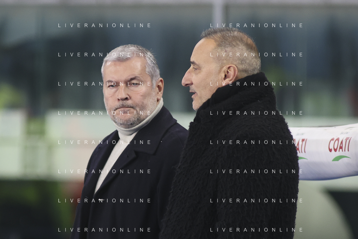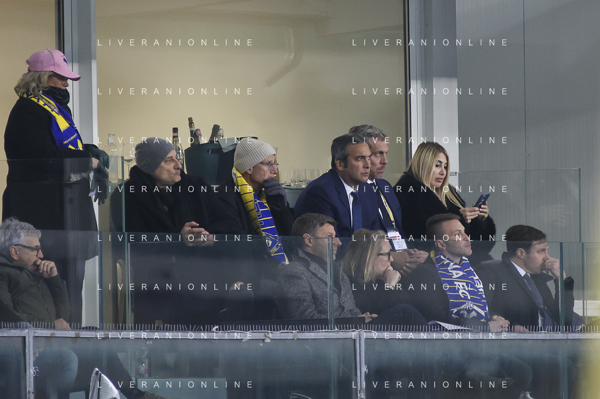 In the first line from left to right: Thomas Hitzlsperger Member of Executive Board of Hellas Verona, Donata Hopfen Member of Executive Board of Hellas Verona, Dirk Swaneveld Member of Executive Board of Hellas Verona,Gennaro Leo Vice General Director of Hellas Verona; in second line: Isabella Thun Member of Executive Board of Hellas Verona (on stending), Maurizio Setti Senior Advisor of Football Operations of Hellas Verona FC, Christian Puscasiu Member of Executive Board of Hellas Verona, Italo Zanzi Ceo of Hellas Verona FC and Sean Foley manager of Hellas Verona FC during Hellas Verona FC vs SS Lazio, 21° Serie A Enilive 2024-25 game at Marcantonio Bentegodi stadium in Verona (VR), Italy, on January 19, 2025. (Photo by Davide Casentini)- AGENZIA ALDO LIVERANI SAS
