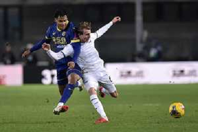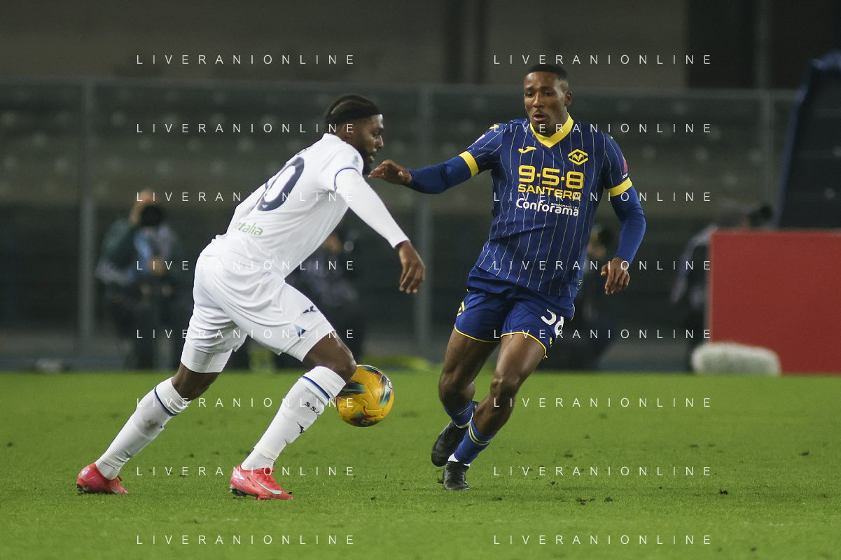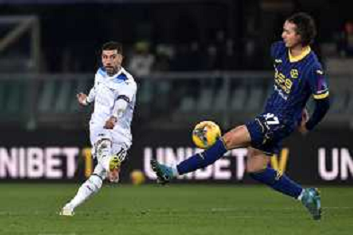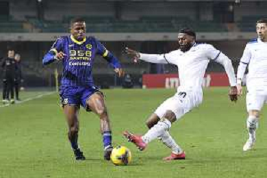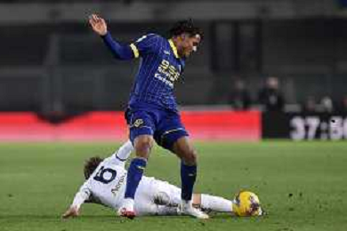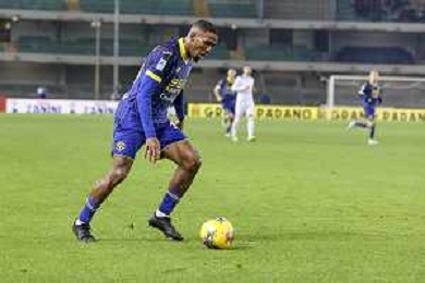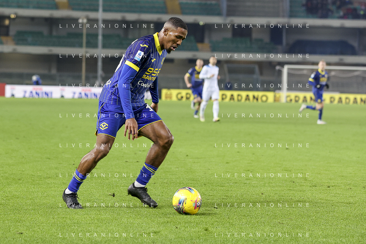 Jackson Tchatchoua of Hellas Verona FC kick the ball during Hellas Verona FC vs SS Lazio, 21° Serie A Enilive 2024-25 game at Marcantonio Bentegodi stadium in Verona (VR), Italy, on January 19, 2025. (Photo by Davide Casentini) - AGENZIA ALDO LIVERANI SAS