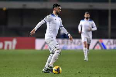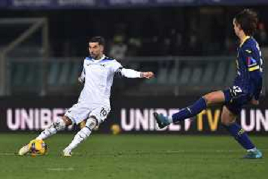 Mattia Zaccagni of SS Lazio play the ball during Hellas Verona FC vs SS Lazio, 21° Serie A Enilive 2024-25 game at Marcantonio Bentegodi stadium in Verona (VR), Italy, on January 19, 2025. (Photo by Davide Casentini) - AGENZIA ALDO LIVERANI SAS