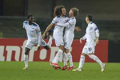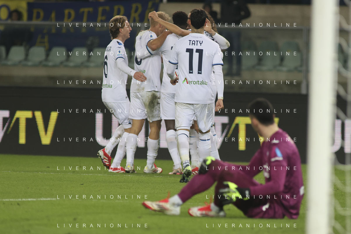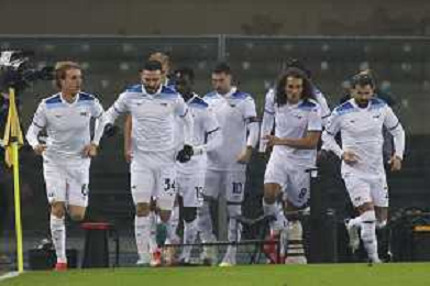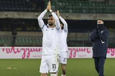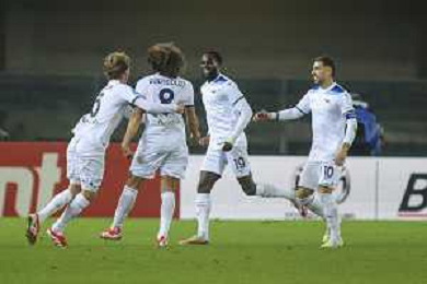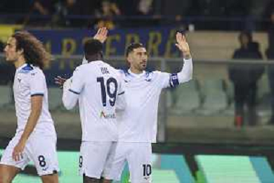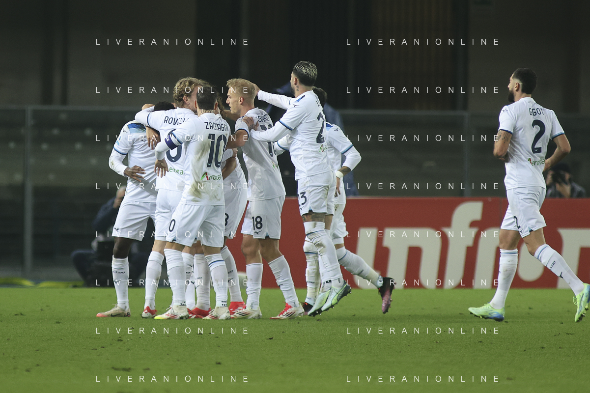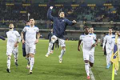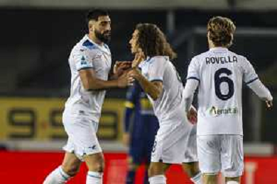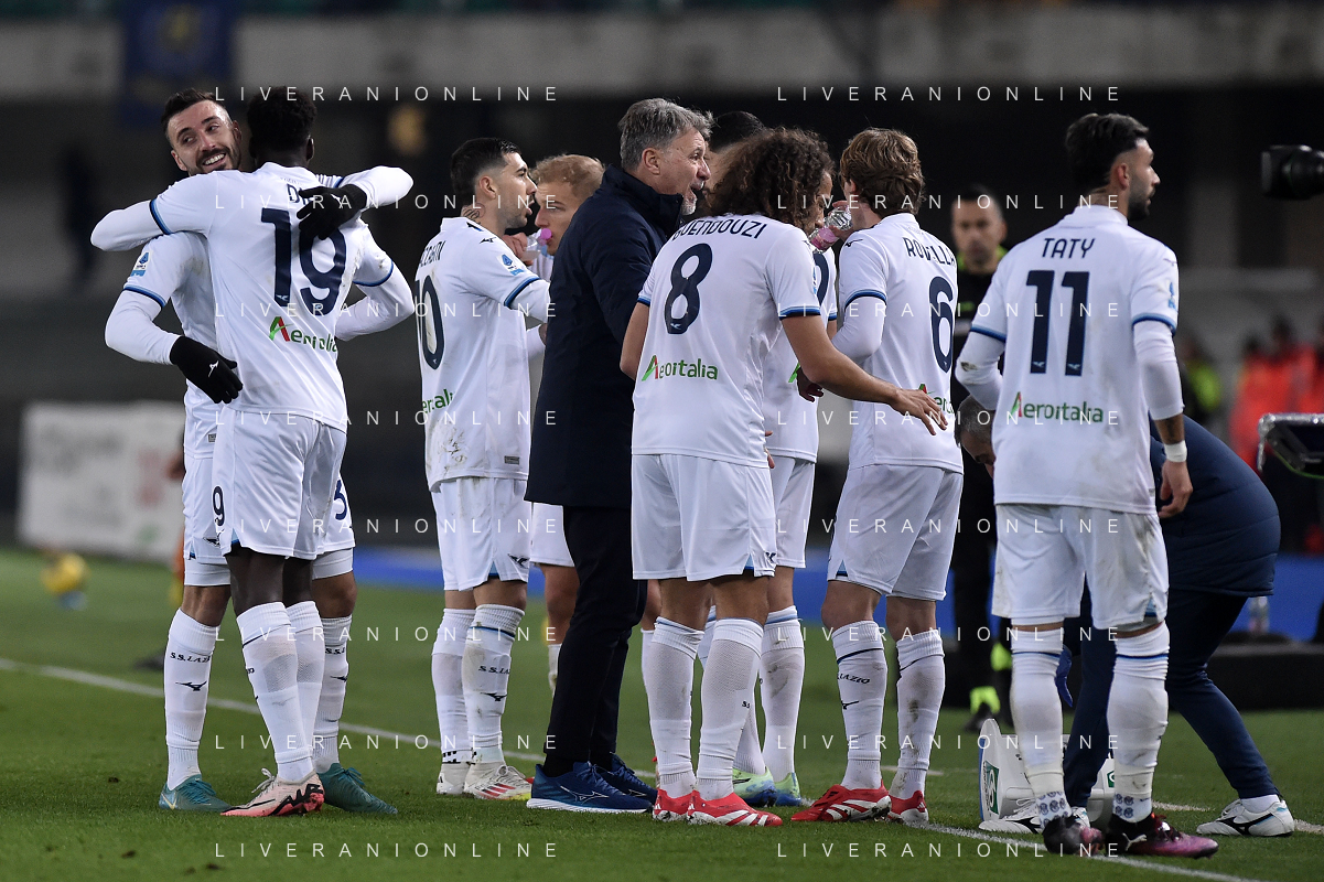 Lazio players celebrate the victory at the end of Hellas Verona FC vs SS Lazio, 21° Serie A Enilive 2024-25 game at Marcantonio Bentegodi stadium in Verona (VR), Italy, on January 19, 2025. (Photo by Davide Casentini) - AGENZIA ALDO LIVERANI SAS