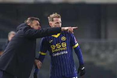 Paolo Zanetti Head Coach of Hellas Verona FC speaks to Ondrej Duda of Hellas Verona FC during Hellas Verona FC vs SS Lazio, 21° Serie A Enilive 2024-25 game at Marcantonio Bentegodi stadium in Verona (VR), Italy, on January 19, 2025. (Photo by Davide Casentini) - AGENZIA ALDO LIVERANI SAS