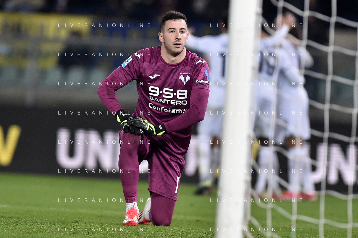 Lorenzo Montipo’ of Hellas Verona FC expresses disappointment after Boulaye Dia of SS Lazio goal during Hellas Verona FC vs SS Lazio, 21° Serie A Enilive 2024-25 game at Marcantonio Bentegodi stadium in Verona (VR), Italy, on January 19, 2025. (Photo by Davide Casentini) - AGENZIA ALDO LIVERANI SAS