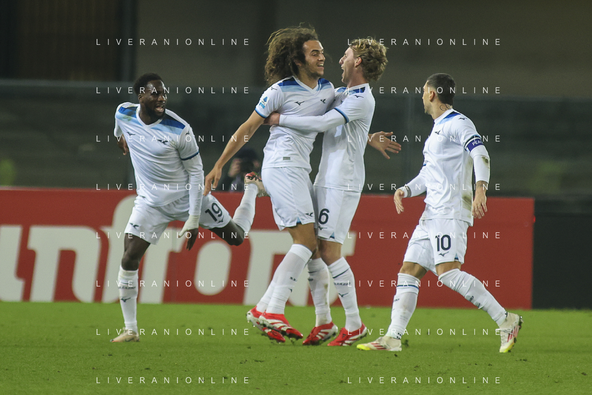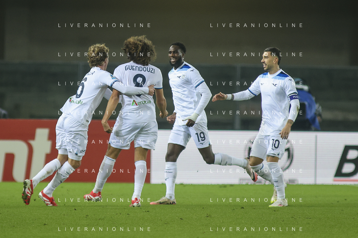 Lazio players celebrates Samuel Gigot of SS Lazio goal during Hellas Verona FC vs SS Lazio, 21° Serie A Enilive 2024-25 game at Marcantonio Bentegodi stadium in Verona (VR), Italy, on January 19, 2025. (Photo by Davide Casentini) - AGENZIA ALDO LIVERANI SAS