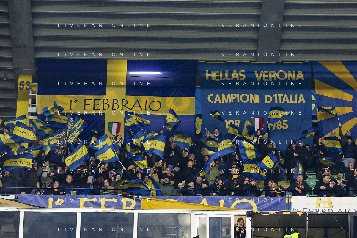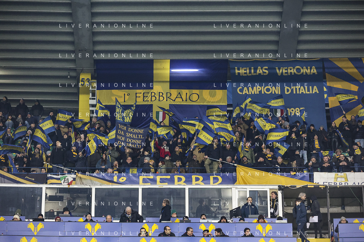 Tifosi - Hellas Verona fans show their support during Hellas Verona FC vs SS Lazio, 21° Serie A Enilive 2024-25 game at Marcantonio Bentegodi stadium in Verona (VR), Italy, on January 19, 2025. (Photo by Davide Casentini) - AGENZIA ALDO LIVERANI SAS