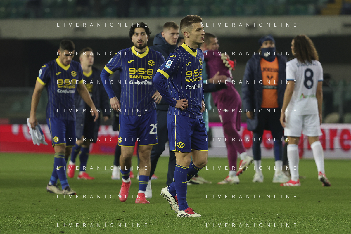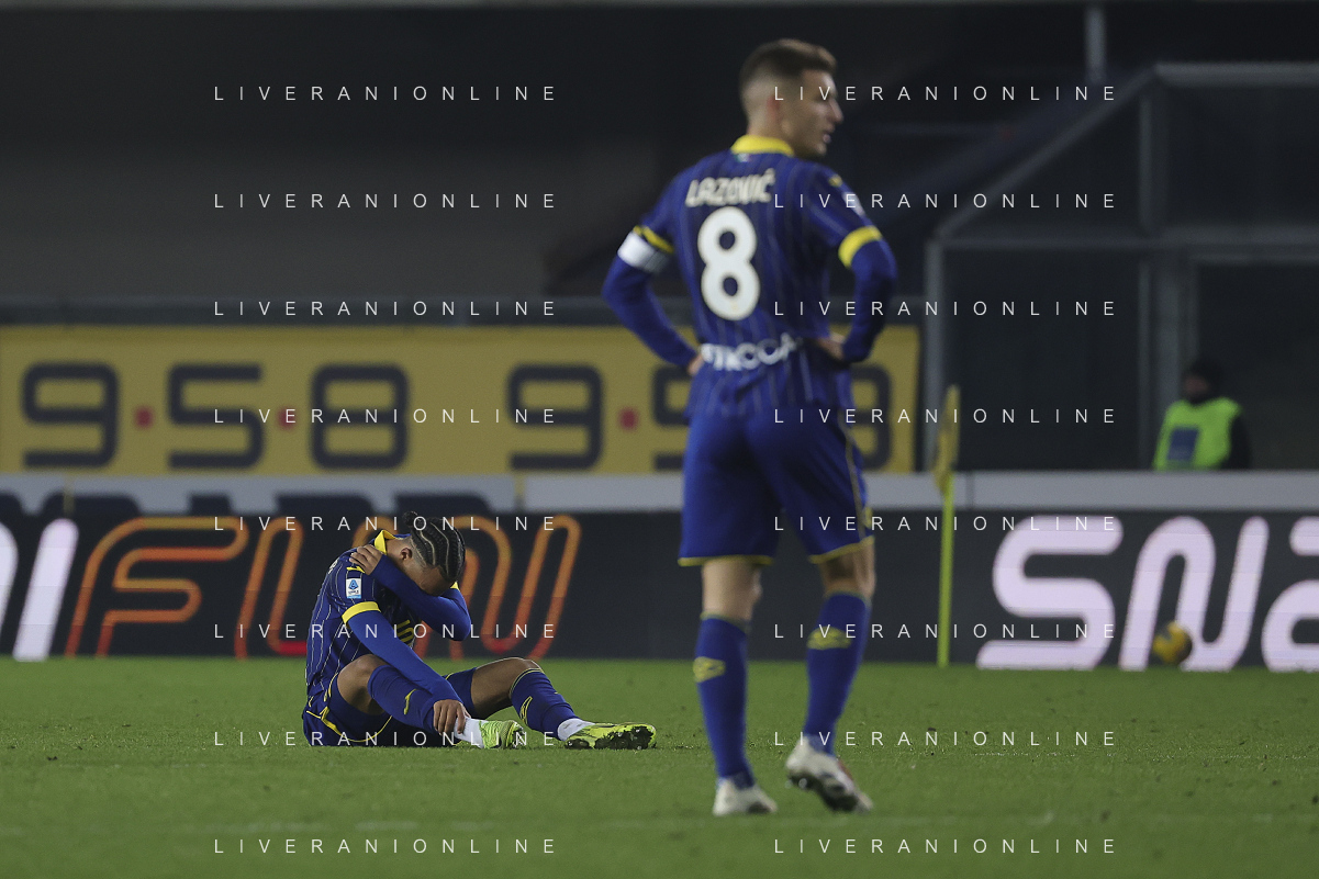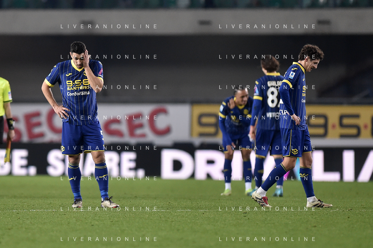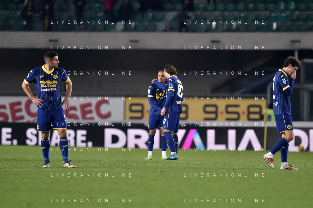 Hellas Verona players delusione at the end of Hellas Verona FC vs SS Lazio, 21° Serie A Enilive 2024-25 game at Marcantonio Bentegodi stadium in Verona (VR), Italy, on January 19, 2025. (Photo by Davide Casentini) - AGENZIA ALDO LIVERANI SAS