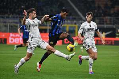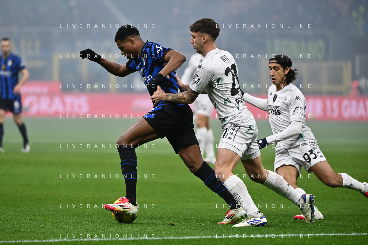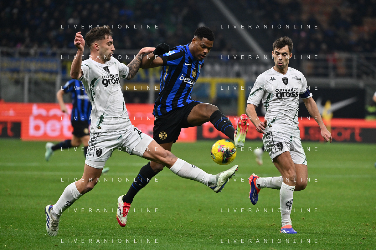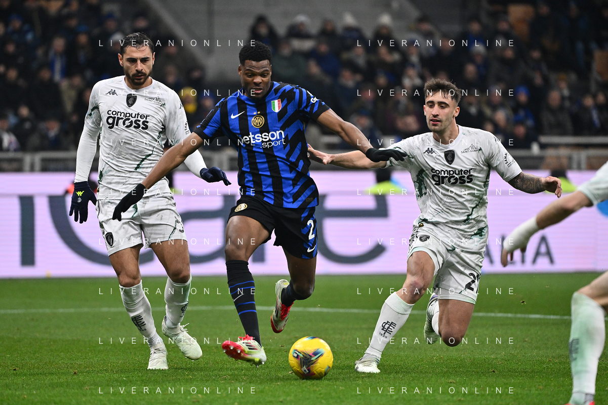 Inter vs Empoli nella foto Denzel Dumfries (Inter) tra Mattia Viti (Empoli) e Alberto Grassi (Empoli) Milano 19-01-2025 Stadio Giuseppe Meazza - San Siro Campionato Serie A Enilive - 21a giornata foto Roberto Garavaglia/Agenzia Aldo Liverani sas- AGENZIA ALDO LIVERANI SAS
