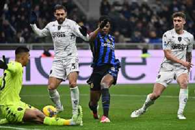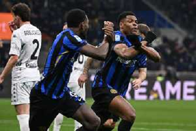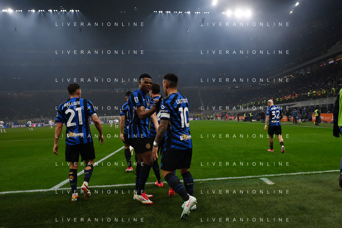 Inter vs Empoli nella foto Denzel Dumfries (Inter) segna il gol del 2 a 0 Milano 19-01-2025 Stadio Giuseppe Meazza - San Siro Campionato Serie A Enilive - 21a giornata foto Roberto Garavaglia/Agenzia Aldo Liverani sas - AGENZIA ALDO LIVERANI SAS