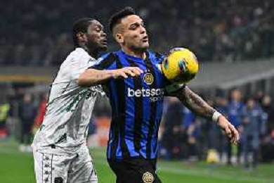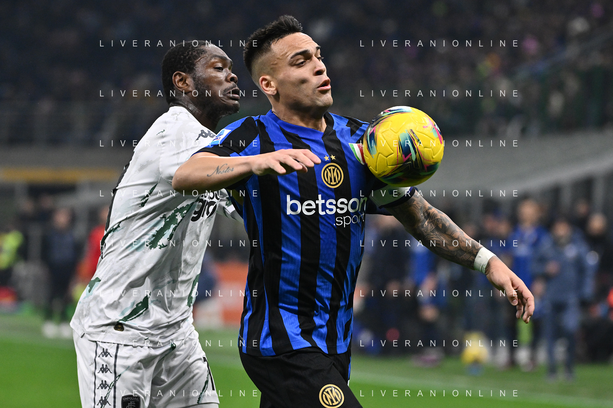 Inter vs Empoli nella foto Emmanuel Gyasi (Empoli) e Lautaro Martinez (Inter) Milano 19-01-2025 Stadio Giuseppe Meazza - San Siro Campionato Serie A Enilive - 21a giornata foto Roberto Garavaglia/Agenzia Aldo Liverani sas - AGENZIA ALDO LIVERANI SAS