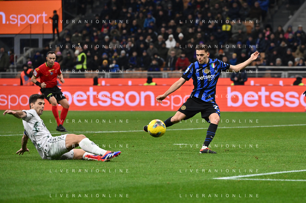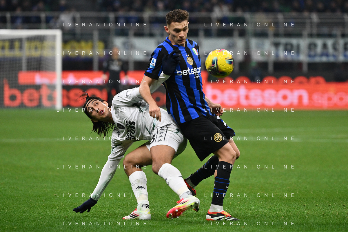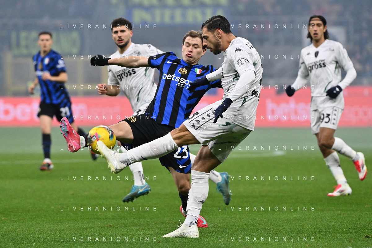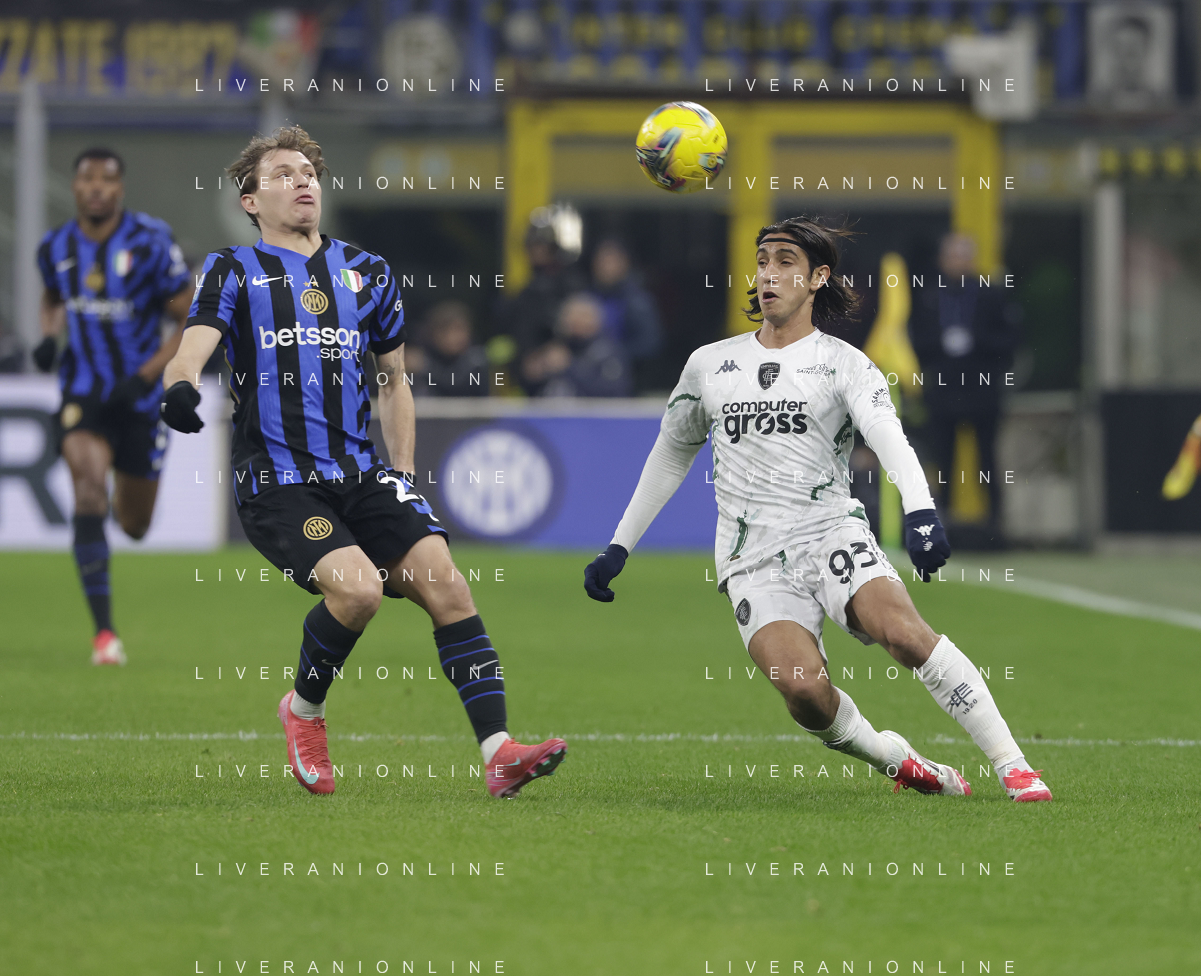 Inter vs Empoli nella foto Nicolo’ Barella (Inter) e Giuseppe Pezzella (Empoli) Milano 19-01-2025 Stadio Giuseppe Meazza - San Siro Campionato Serie A Enilive - 21a giornata foto Roberto Garavaglia/Agenzia Aldo Liverani sas- AGENZIA ALDO LIVERANI SAS