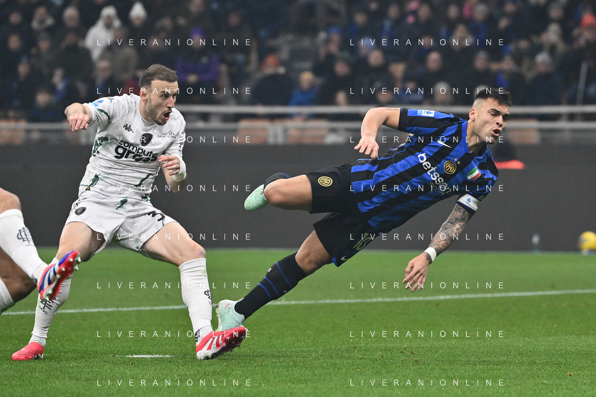 Inter vs Empoli nella foto Ardian Ismajli (Empoli) e Lautaro Martinez (Inter) Milano 19-01-2025 Stadio Giuseppe Meazza - San Siro Campionato Serie A Enilive - 21a giornata foto Roberto Garavaglia/Agenzia Aldo Liverani sas- AGENZIA ALDO LIVERANI SAS