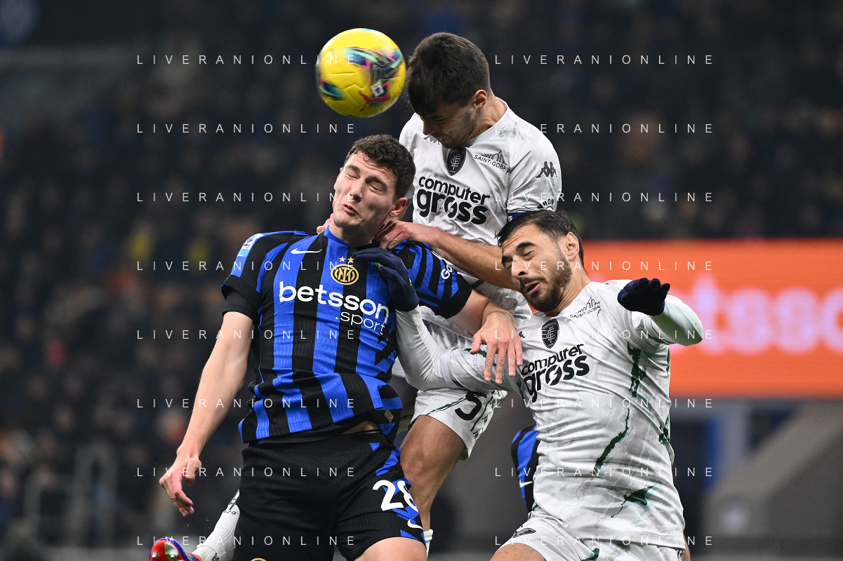 Inter vs Empoli nella foto da SX Benjamin Pavard (Inter), Alberto Grassi (Empoli) e Giuseppe Pezzella (Empoli) Milano 19-01-2025 Stadio Giuseppe Meazza - San Siro Campionato Serie A Enilive - 21a giornata foto Roberto Garavaglia/Agenzia Aldo Liverani sas- AGENZIA ALDO LIVERANI SAS