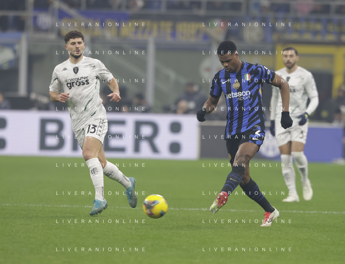 Inter vs Empoli nella foto Denzel Dumfries (Inter) e Mattia Viti (Empoli) Milano 19-01-2025 Stadio Giuseppe Meazza - San Siro Campionato Serie A Enilive - 21a giornata foto Roberto Garavaglia/Agenzia Aldo Liverani sas- AGENZIA ALDO LIVERANI SAS