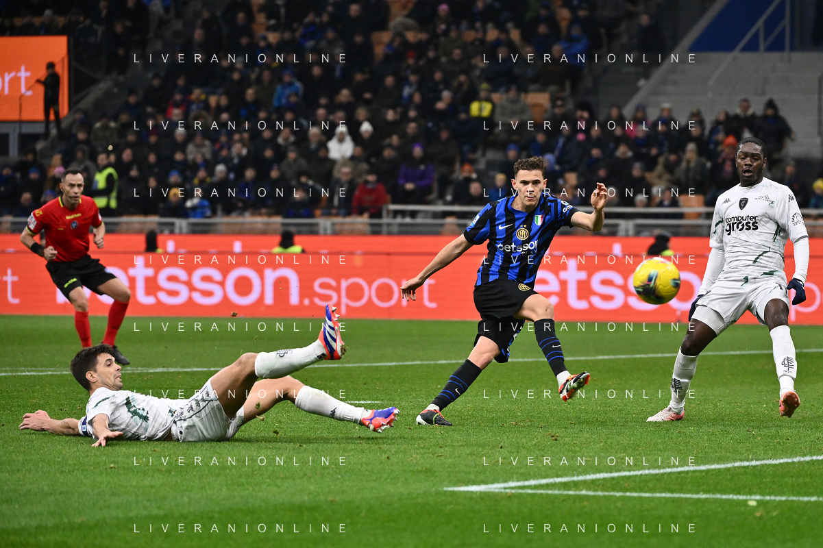 Inter vs Empoli nella foto Youssef Maleh (Empoli) e Kristjan Asllani (Inter) Milano 19-01-2025 Stadio Giuseppe Meazza - San Siro Campionato Serie A Enilive - 21a giornata foto Roberto Garavaglia/Agenzia Aldo Liverani sas- AGENZIA ALDO LIVERANI SAS