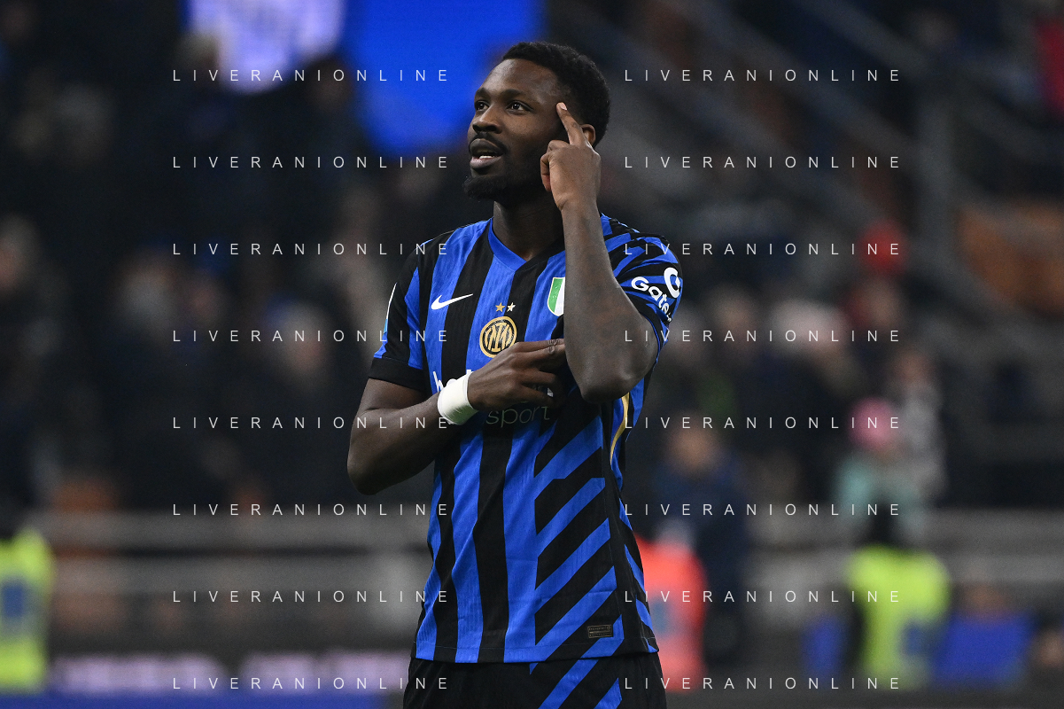 Inter vs Empoli nella foto Marcus Thuram (Inter) esultanza dopo il gol del 3 a 1 Milano 19-01-2025 Stadio Giuseppe Meazza - San Siro Campionato Serie A Enilive - 21a giornata foto Roberto Garavaglia/Agenzia Aldo Liverani sas - AGENZIA ALDO LIVERANI SAS