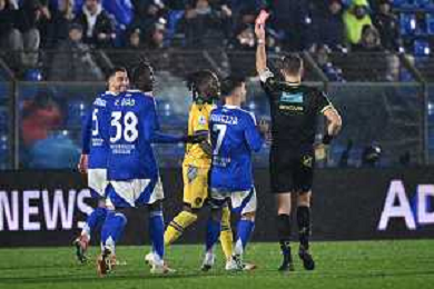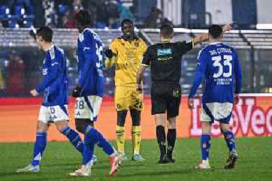 TVRG Como vs Udinese nella foto l'arbitro Francesco Cosso di Reggio Calabria espelle Oumar Solet (Udinese) Como 20-01-2025 Stadio Giuseppe Sinigaglia Campionato Serie A Enilive - 21a giornata foto Roberto Garavaglia/Agenzia Aldo Liverani sas