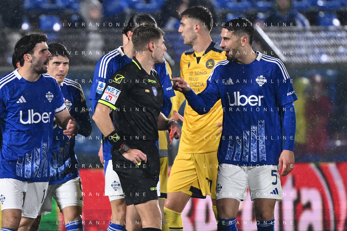 TVRG Como vs Udinese nella foto proteste Como con l'arbitro Francesco Cosso di Reggio Calabria dopo l'espulsione di Edoardo Goldaniga (Como) Como 20-01-2025 Stadio Giuseppe Sinigaglia Campionato Serie A Enilive - 21a giornata foto Roberto Garavaglia/Agenzia Aldo Liverani sas