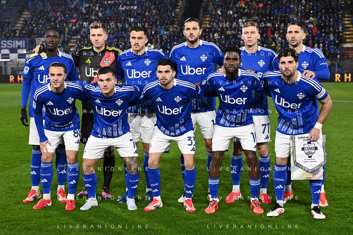 TVRG Como vs Udinese nella foto formazione Como, in piedi da SX Assane Diao, Jean Butez, Marc Oliver Kempf, Alberto Dossena, Ignace Van der Brempt ed Edoardo Goldaniga; in basso da SX Maxence Caqueret, Gabriel Strefezza, Lucas Da Cunha, Alieu Fadera e Patrick Cutrone Como 20-01-2025 Stadio Giuseppe Sinigaglia Campionato Serie A Enilive - 21a giornata foto Roberto Garavaglia/Agenzia Aldo Liverani sas
