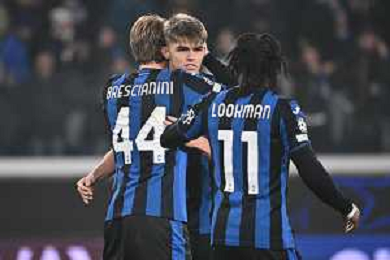 TVRG Atalanta vs Sturm Graz nella foto Marco Brescianini (Atalanta), Charles de Ketelaere (Atalanta) e Ademola Lookman (Atalanta) esultanza dopo il gol del 5 a 0 Bergamo 21-01-2025 Gewiss Stadium UEFA Champions League fase a girone unico - 7a giornata foto Roberto Garavaglia/Agenzia Aldo Liverani sas
