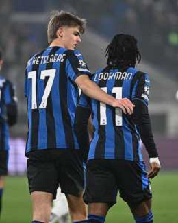 TVRG Atalanta vs Sturm Graz nella foto Charles de Ketelaere (Atalanta) e Ademola Lookman (Atalanta) esultanza dopo il gol del 4 a 0 Bergamo 21-01-2025 Gewiss Stadium UEFA Champions League fase a girone unico - 7a giornata foto Roberto Garavaglia/Agenzia Aldo Liverani sas