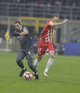 Milan vs Girona nella foto Alejandro Frances (Girona) e Theo Hernandez (Milan) Milano 22-01-2025 Stadio Giuseppe Meazza - San Siro UEFA Champions League fase a girone unico - 7a giornata foto Roberto Garavaglia/Agenzia Aldo Liverani sas- AGENZIA ALDO LIVERANI SAS