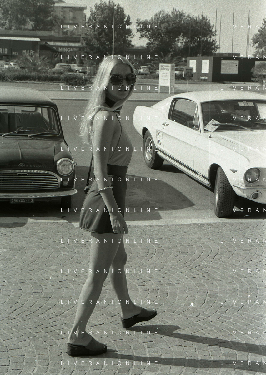 NEG-RETROSPETTIVA BARBARA BOUCHET ATTRICE NELLA FOTO BARBARA BOUCHET A RIMINI ANNO 1971 AG ALDO LIVERANI SAS