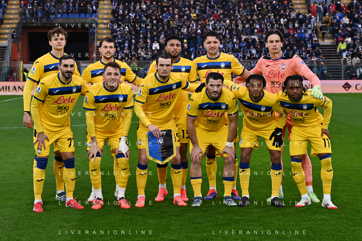 TVRG Como vs Atalanta nella foto formazione Atalanta, in piedi da SX Giorgio Scalvini, Lazar Samardzic, Ederson Jose' dos Santos, Berat Djimsiti e Marco Carnesecchi; in basso da SX Davide Zappacosta, Mateo Retegui, Marten de Roon, Sead Kolasinac, Juan Cuadrado e Ademola Lookman Como 25-01-2025 Stadio Giuseppe Sinigaglia Campionato Serie A Enilive - 22a giornata foto Roberto Garavaglia/Agenzia Aldo Liverani sas