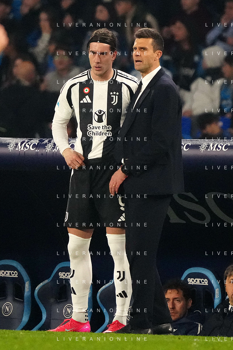 NAPOLI vs JUVENTUS Campionato Calcio Serie A 23.01.2025 Nella foto: Dusan Vlahovic, Thiago Motta ©MOSCA- AGENZIA ALDO LIVERANI SAS