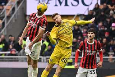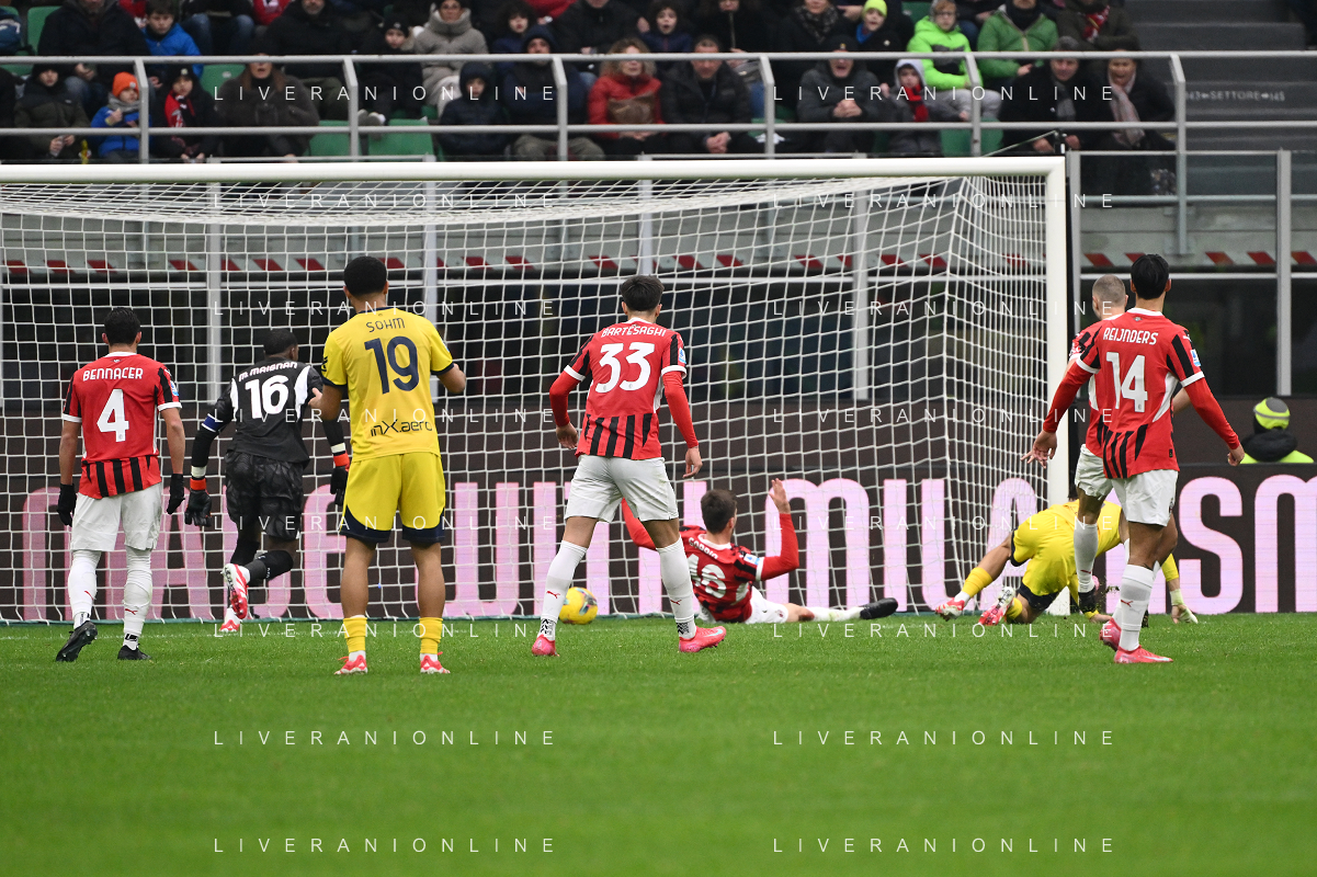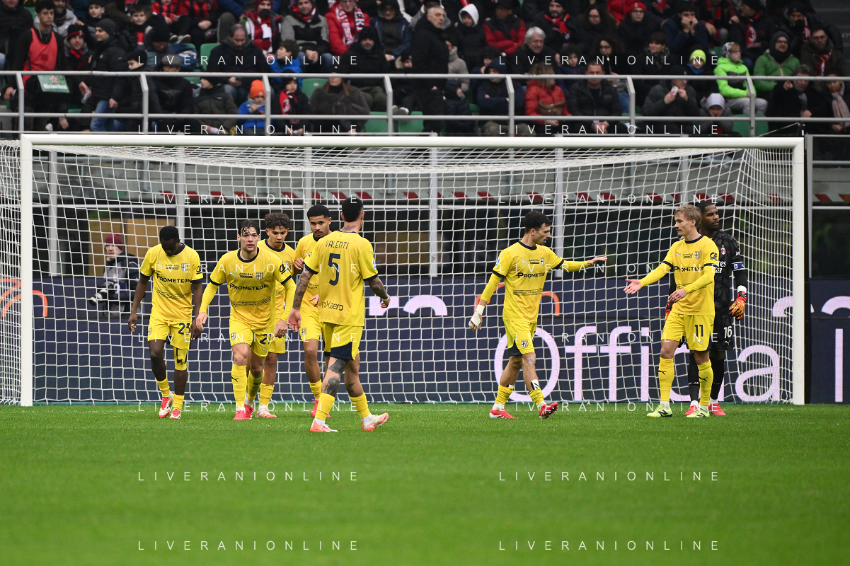 Milan vs Parma nella foto Enrico Delprato (Parma) segna il gol del 2 a 1 Milano 26-01-2025 Stadio Giuseppe Meazza - San Siro Campionato Serie A Enilive - 22a giornata foto Roberto Garavaglia/Agenzia Aldo Liverani sas- AGENZIA ALDO LIVERANI SAS