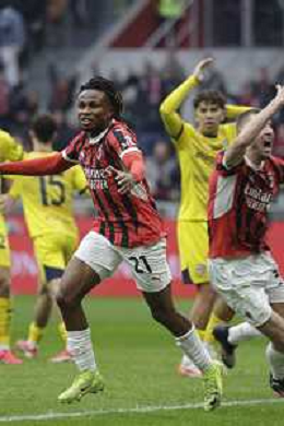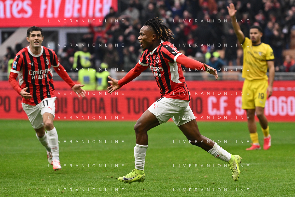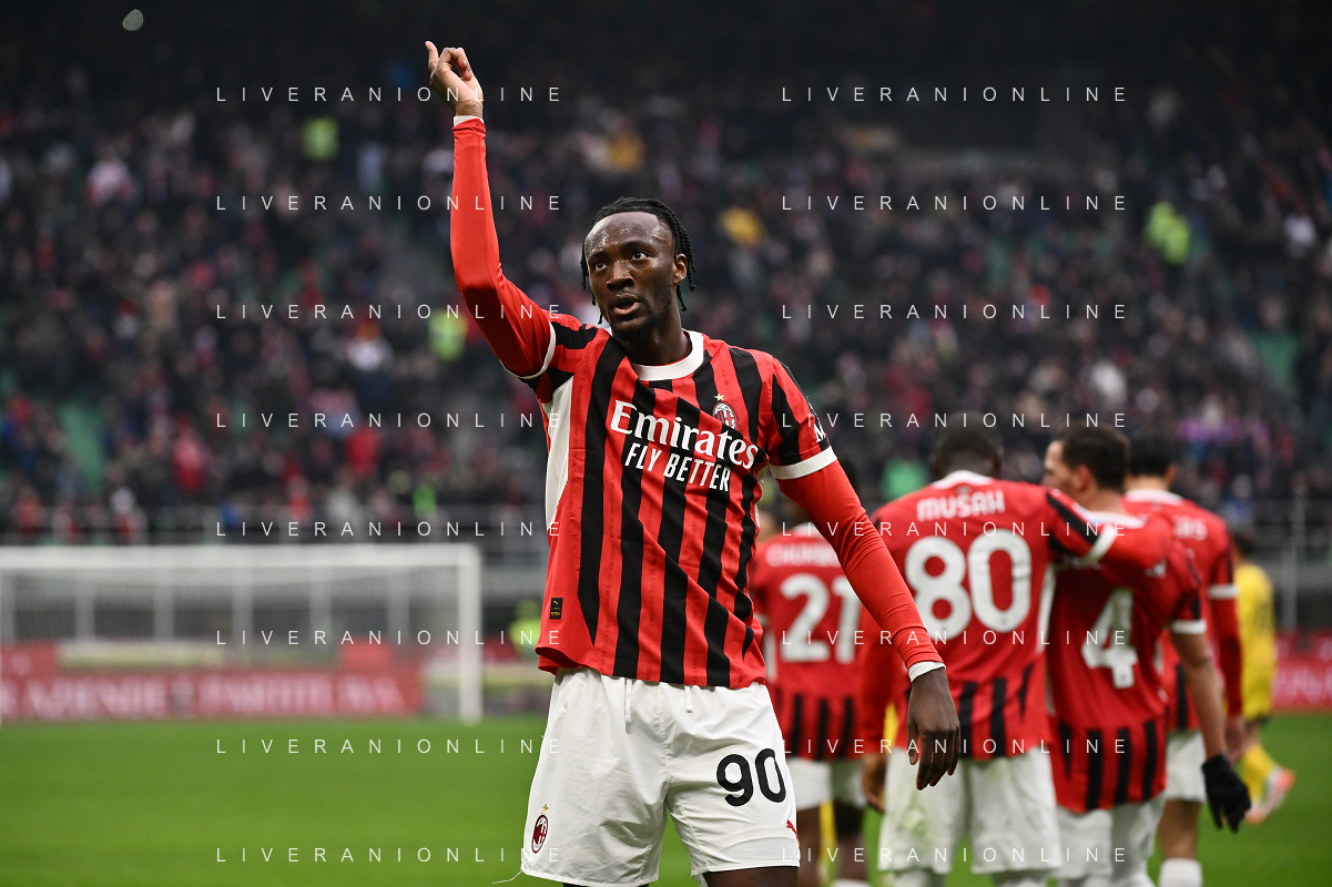 Milan vs Parma nella foto Samuel Chukwueze (Milan) esultanza dopo il gol del 3 a 2 Milano 26-01-2025 Stadio Giuseppe Meazza - San Siro Campionato Serie A Enilive - 22a giornata foto Roberto Garavaglia/Agenzia Aldo Liverani sas- AGENZIA ALDO LIVERANI SAS