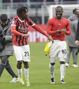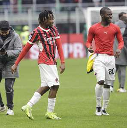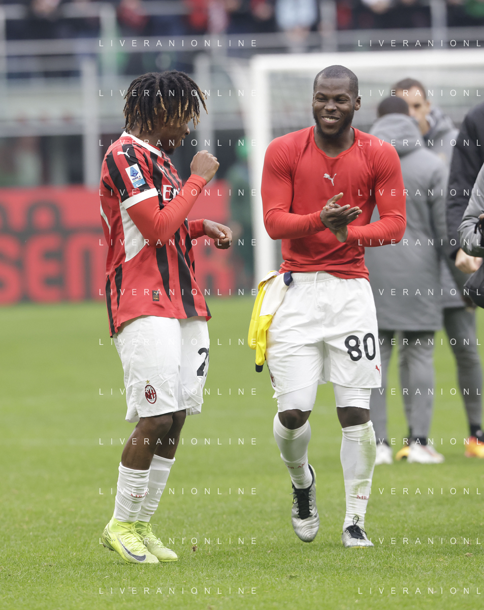 Milan vs Parma nella foto Tammy Abraham (Milan) esultanza dopo il gol del 3 a 2 di Samuel Chukwueze (Milan) Milano 26-01-2025 Stadio Giuseppe Meazza - San Siro Campionato Serie A Enilive - 22a giornata foto Roberto Garavaglia/Agenzia Aldo Liverani sas- AGENZIA ALDO LIVERANI SAS
